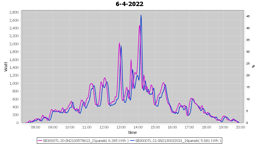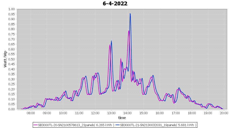 | 6-4-2022 | kWh | Sum | W/Wp | 11.946 | 6000 | 2.0 | 5.525 | € 4.33 | 1.6 |