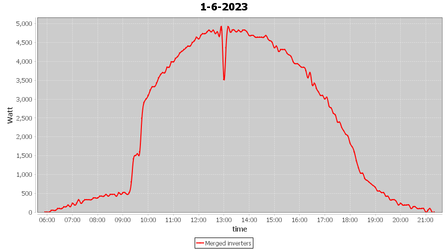 | 1-6-2023 | kWh | Sum | W/Wp | 36.131 | 6000 | 6.0 | 16.711 | € 13.49 | 3.8 |