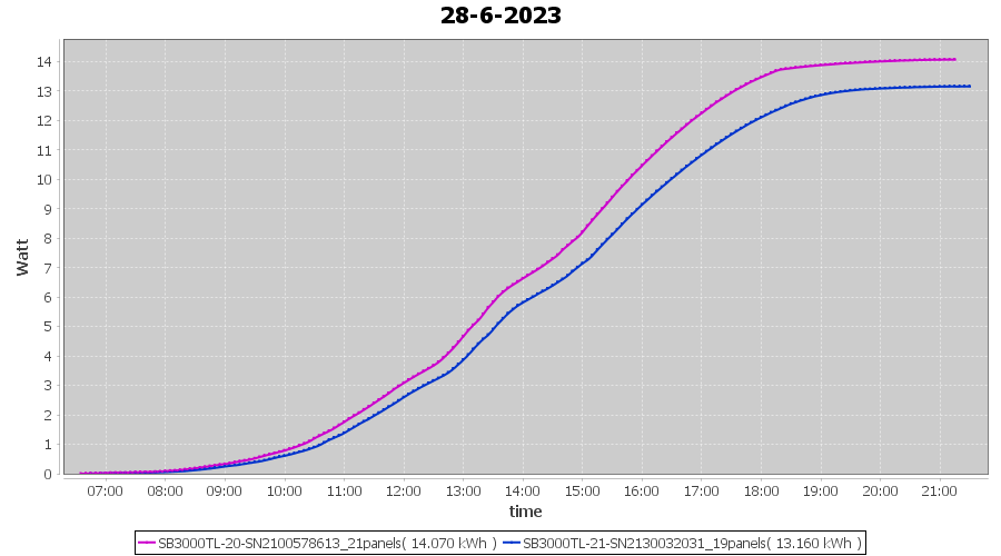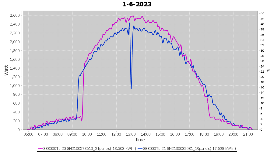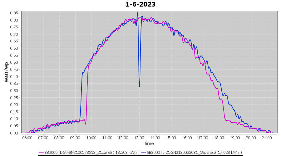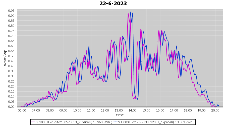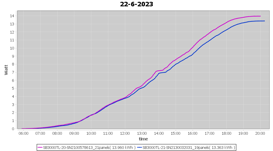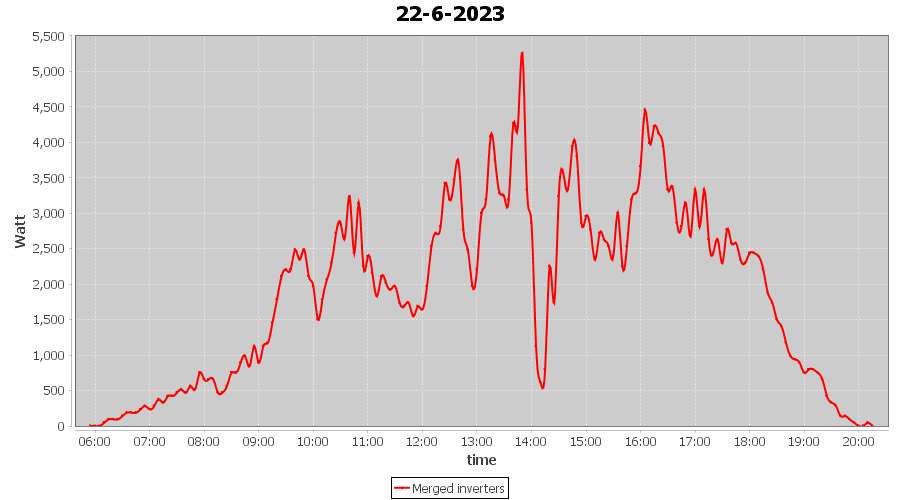 | 13-6-2023 | kWh | Sum | W/Wp | 38.124 | 6000 | 6.4 | 17.632 | € 14.23 | 4.0 |