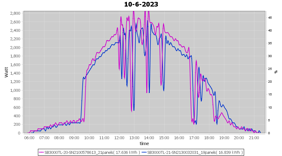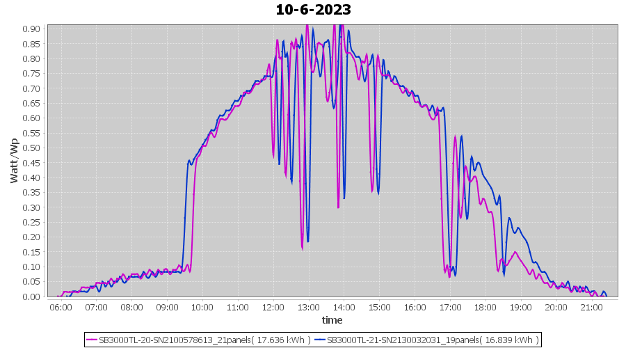 | 10-6-2023 | kWh | Sum | W/Wp | 34.475 | 6000 | 5.7 | 15.945 | € 12.87 | 3.6 |