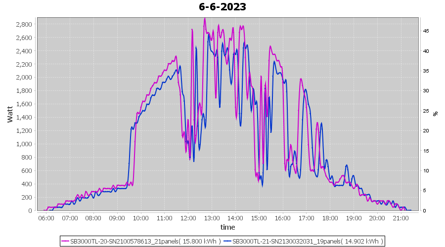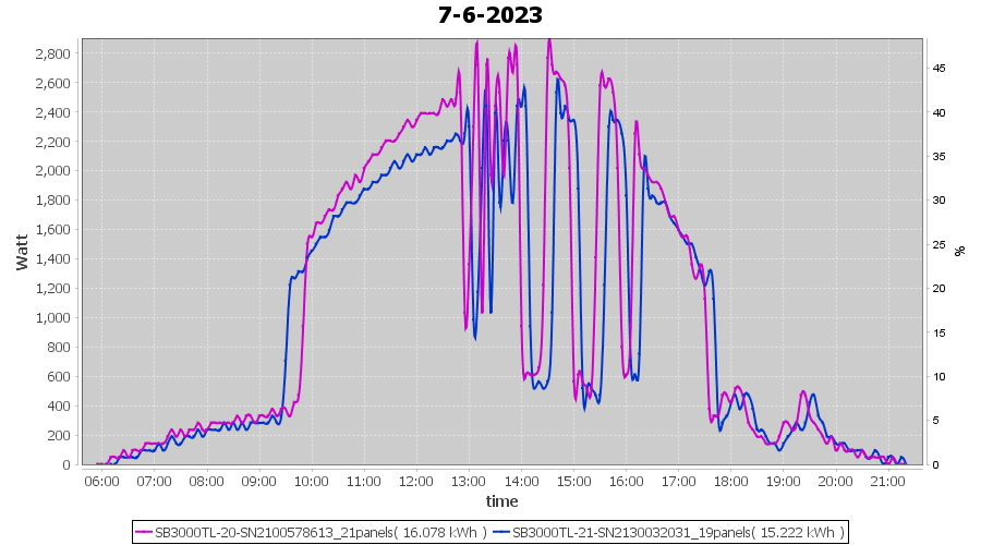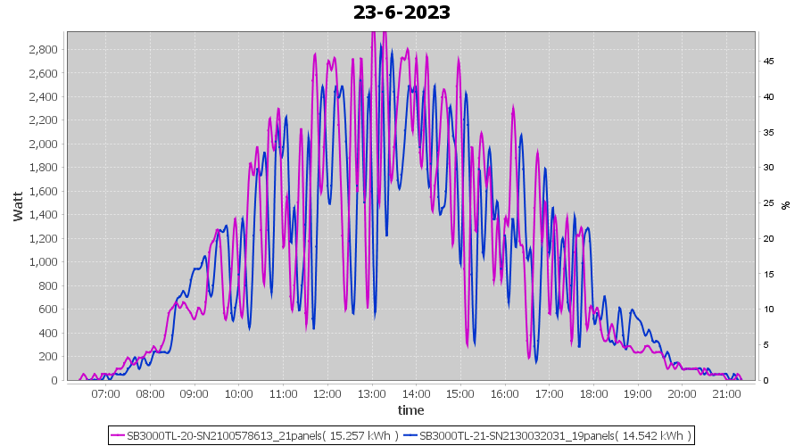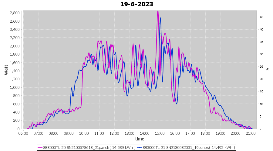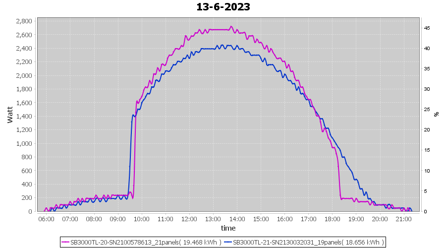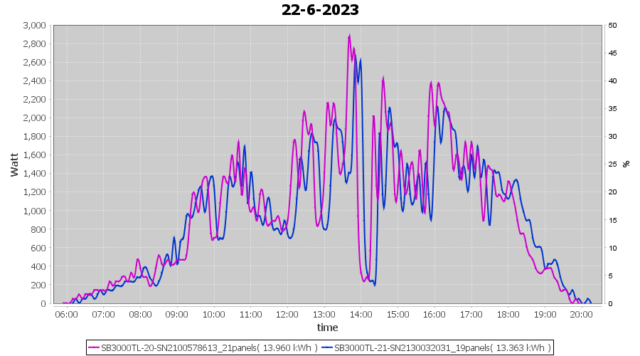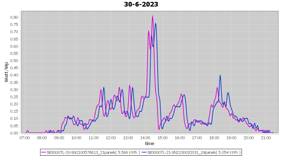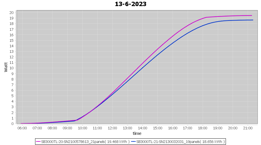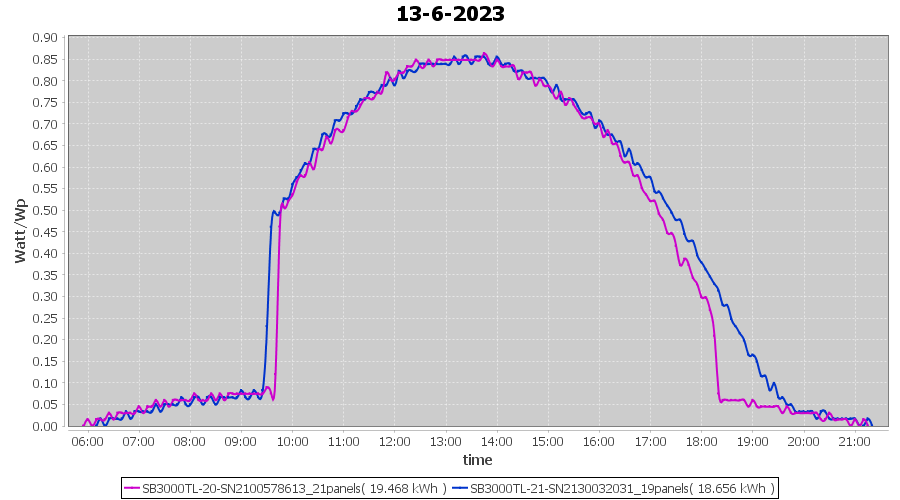 | 19-6-2023 | kWh | Sum | W/Wp | 29.081 | 6000 | 4.8 | 13.450 | € 10.86 | 3.0 |