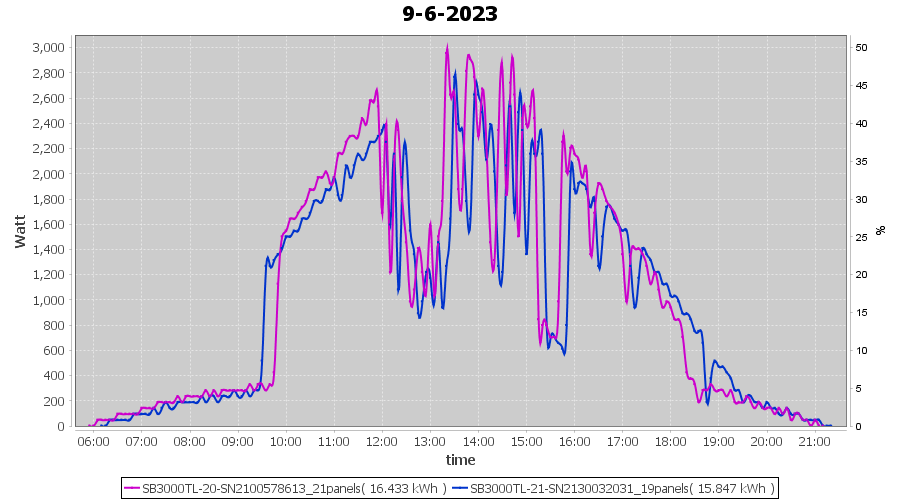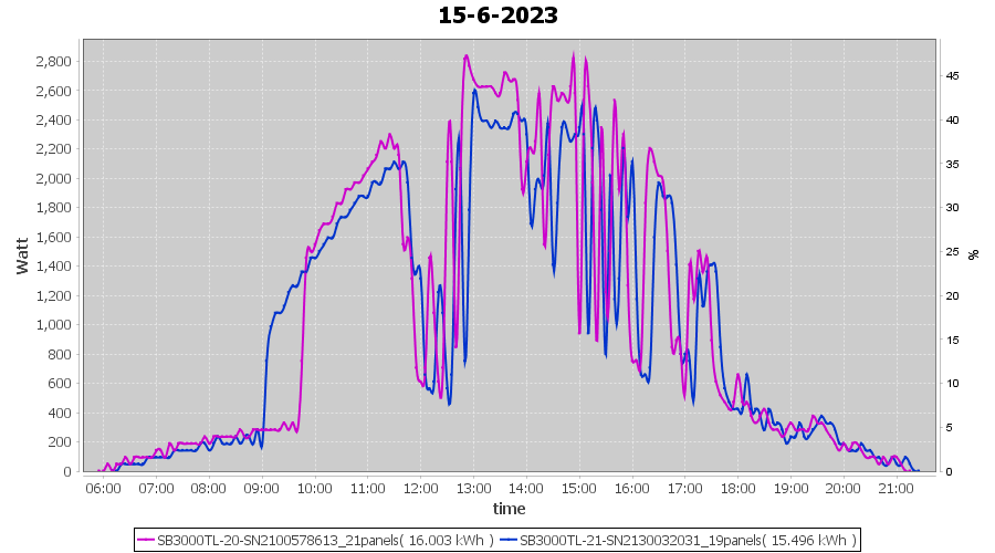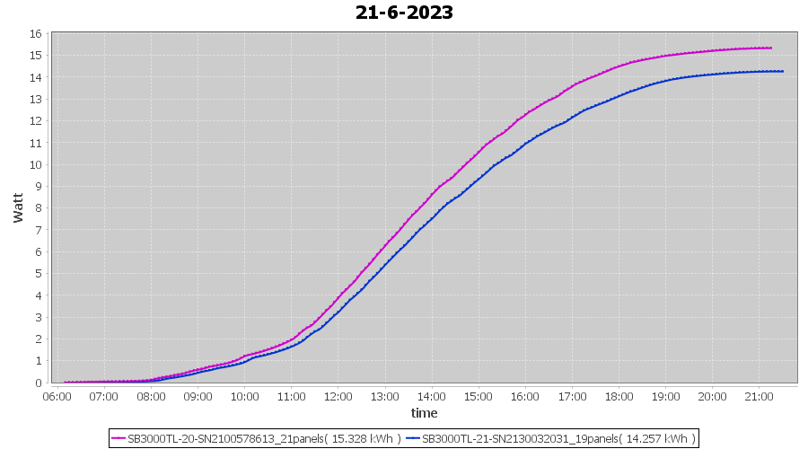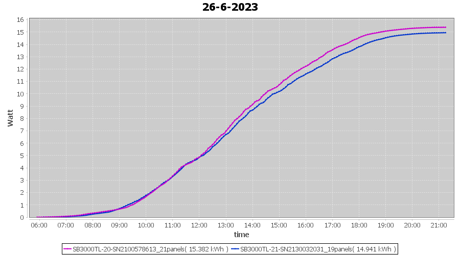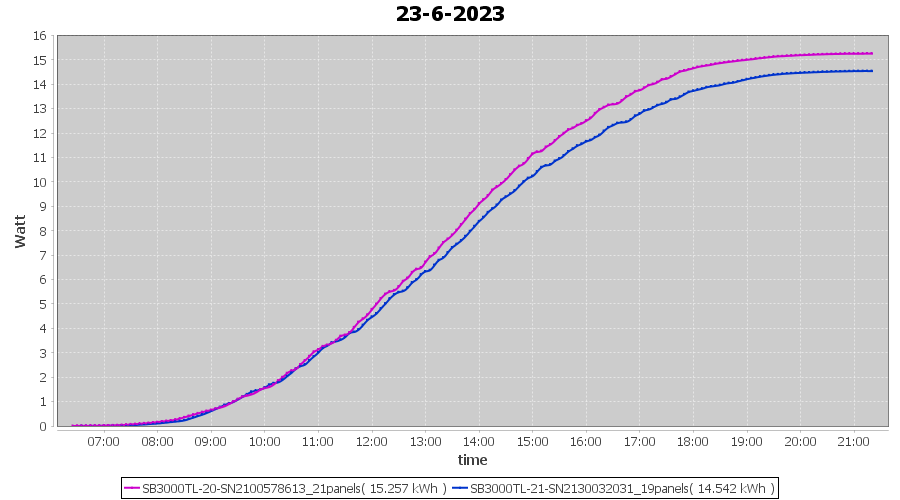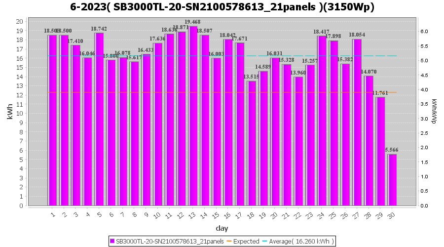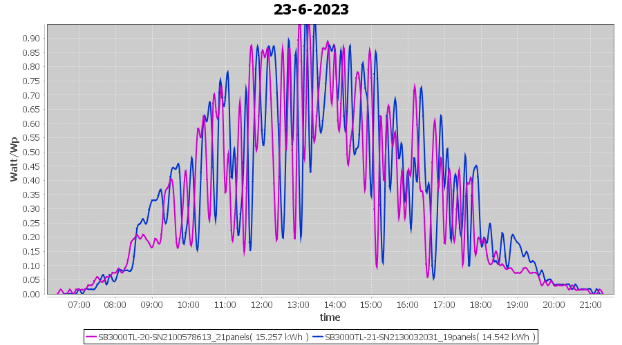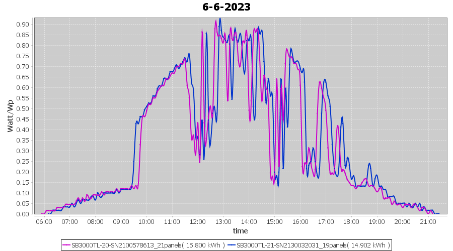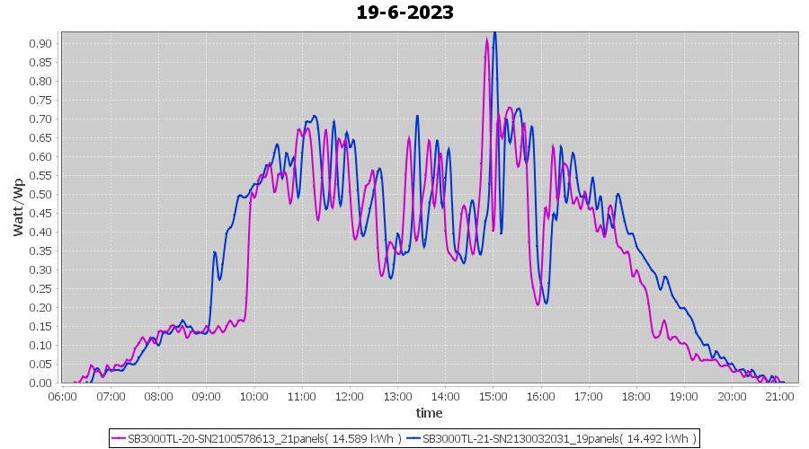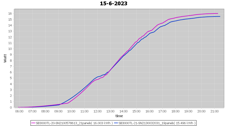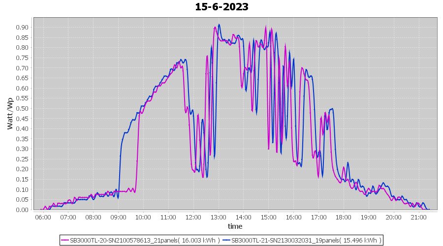 | 15-6-2023 | kWh | Sum | W/Wp | 31.499 | 6000 | 5.2 | 14.568 | € 11.76 | 3.3 |