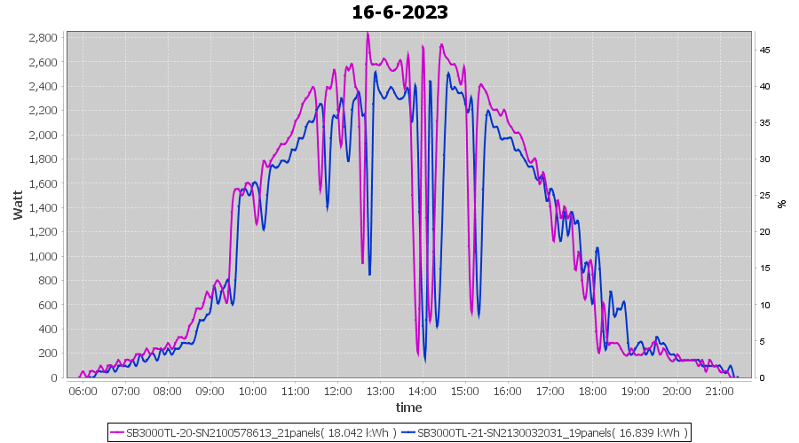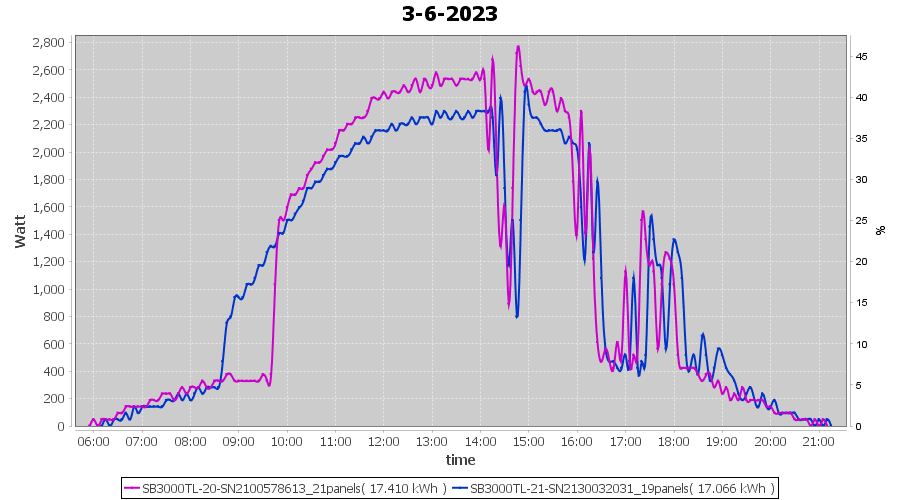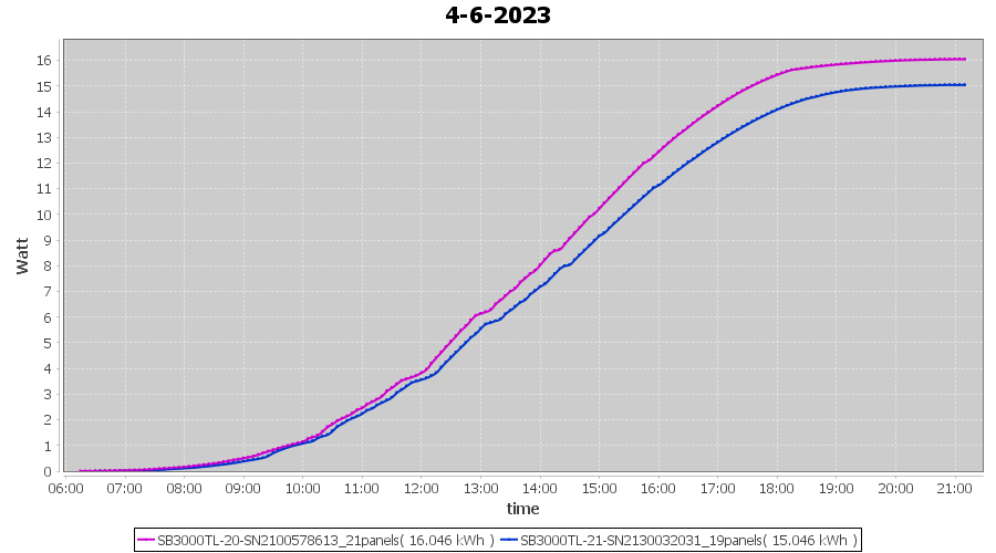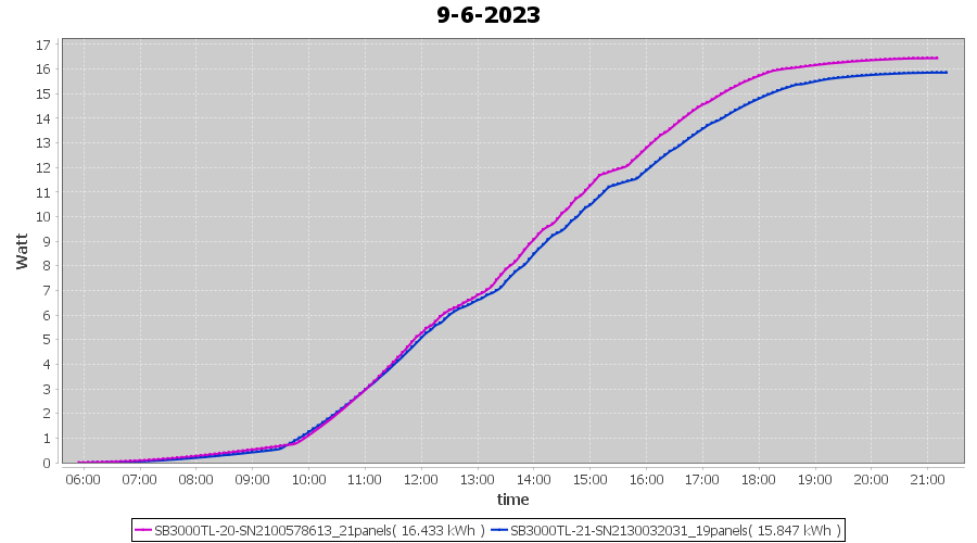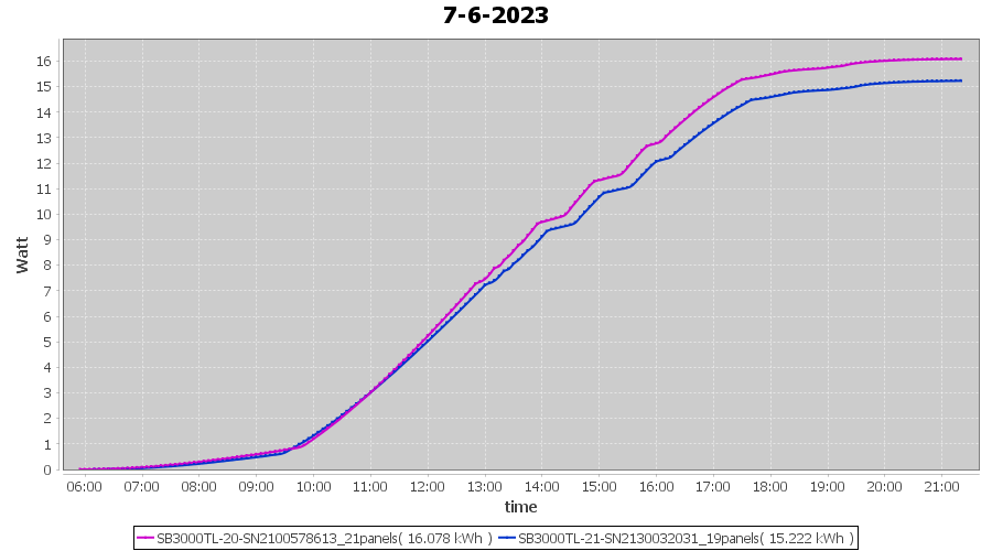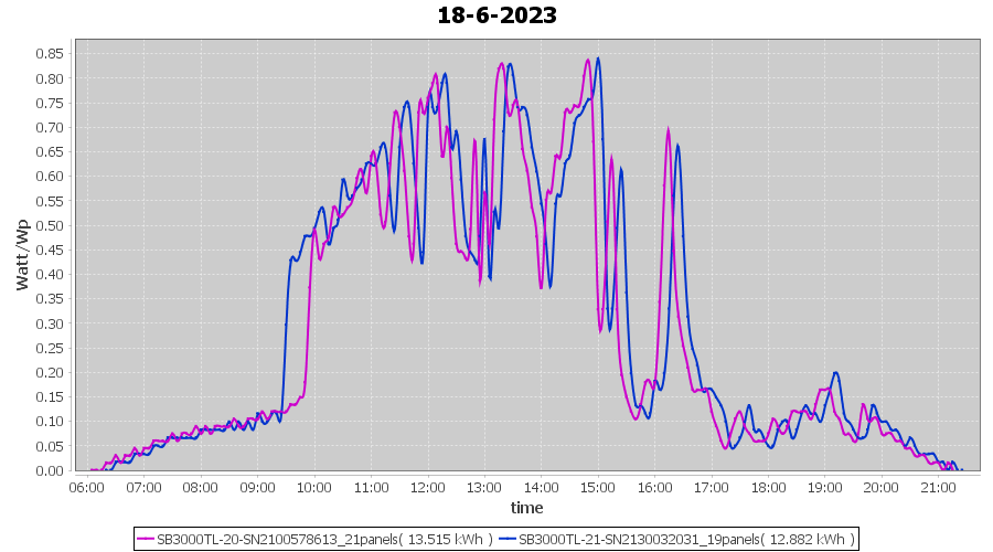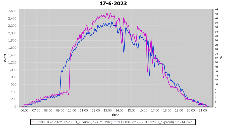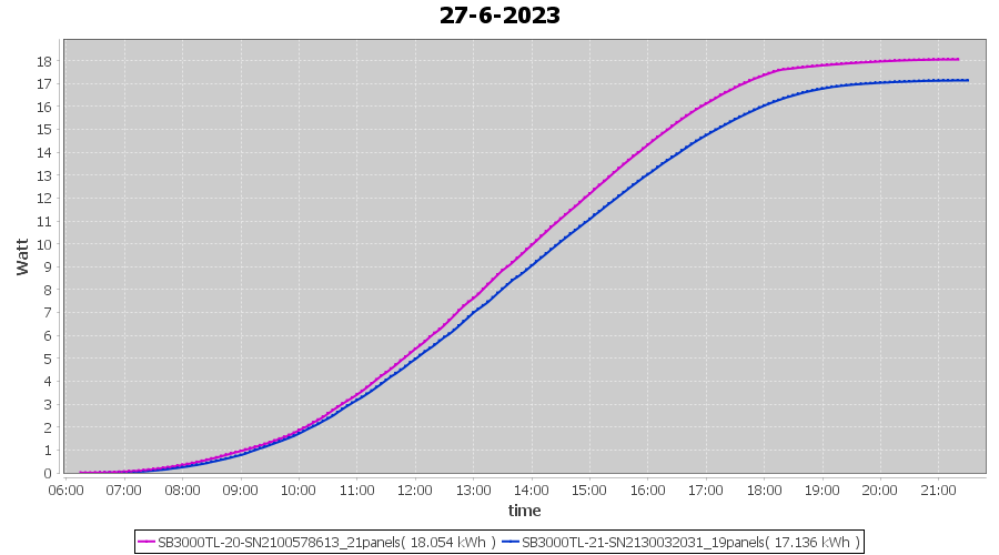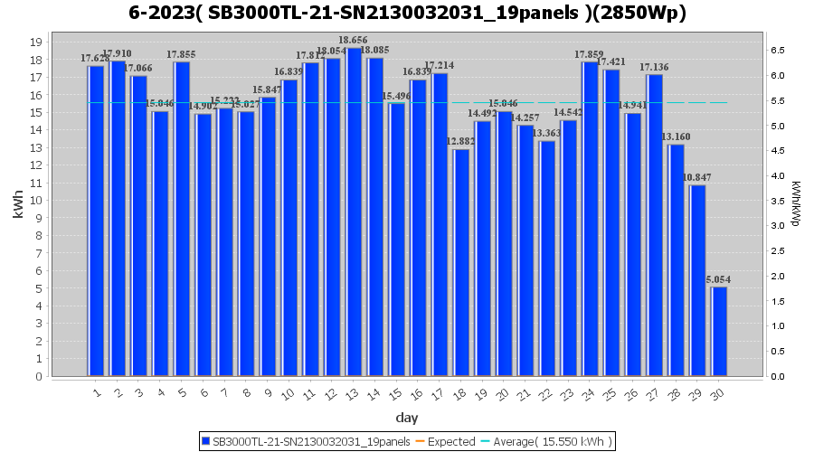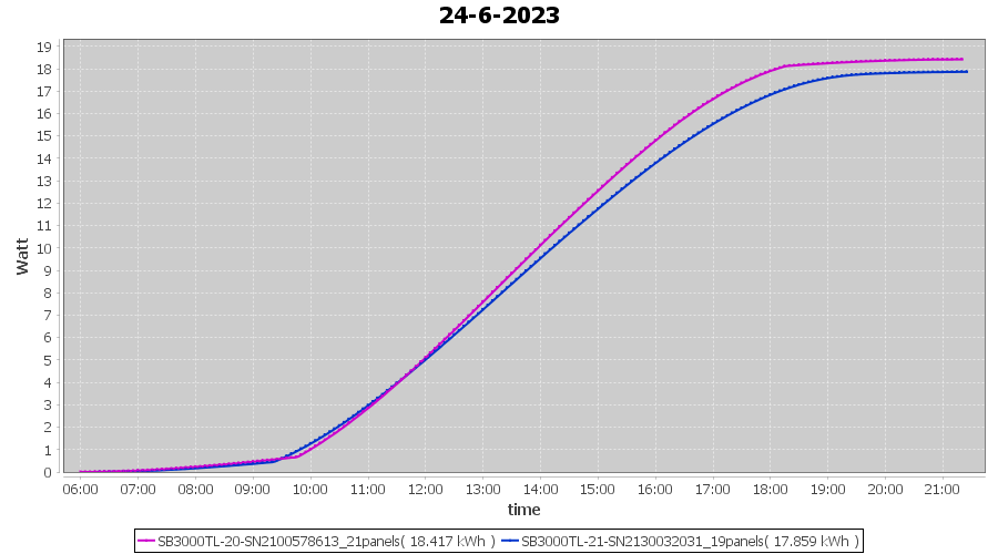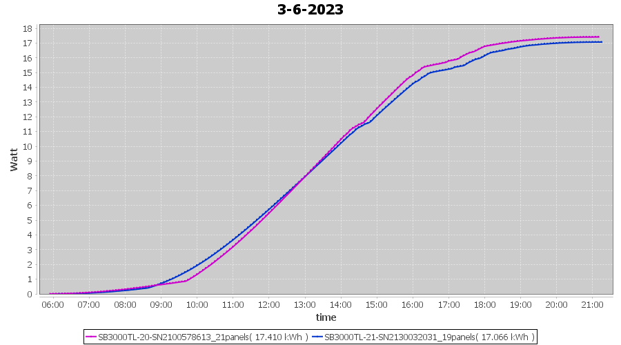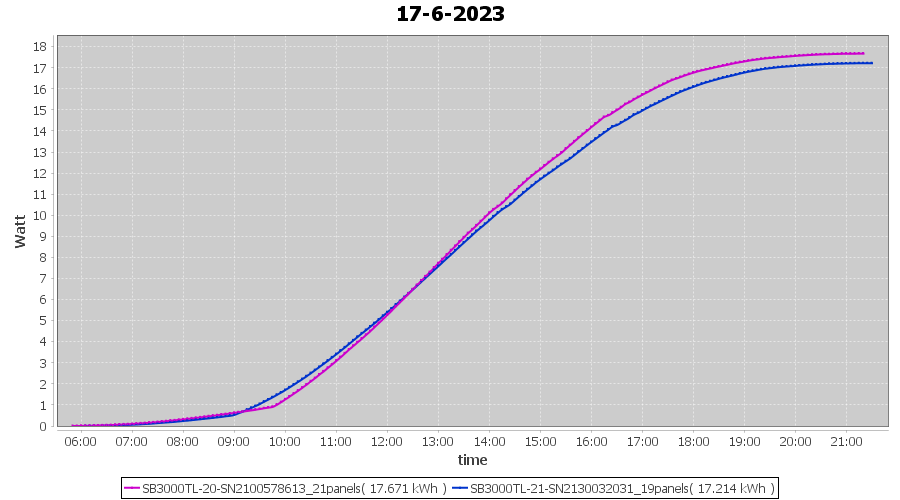 | 17-6-2023 | kWh | Sum | W/Wp | 34.885 | 6000 | 5.8 | 16.134 | € 13.02 | 3.7 |
