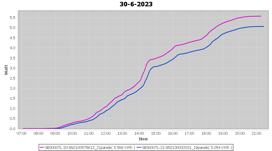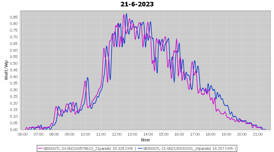 | 21-6-2023 | kWh | Sum | W/Wp | 29.585 | 6000 | 4.9 | 13.683 | € 11.04 | 3.1 |