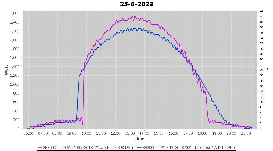 | 25-6-2023 | kWh | Sum | W/Wp | 35.319 | 6000 | 5.9 | 16.335 | € 13.19 | 3.7 |
