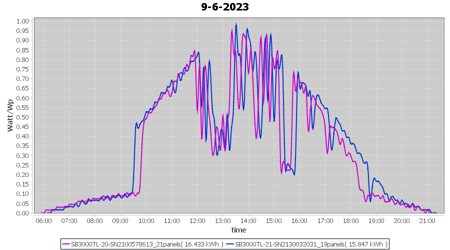 | 9-6-2023 | kWh | Sum | W/Wp | 32.280 | 6000 | 5.4 | 14.929 | € 12.05 | 3.4 |