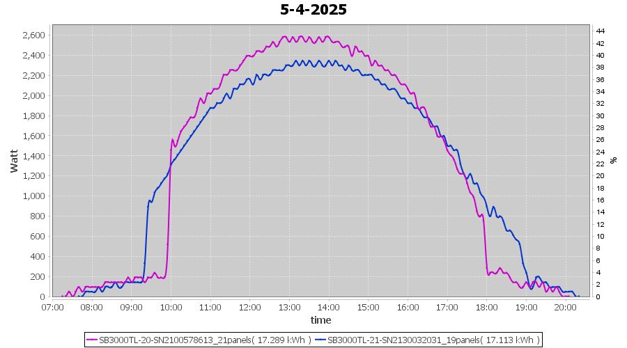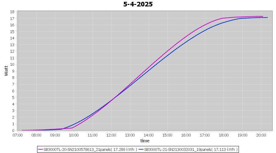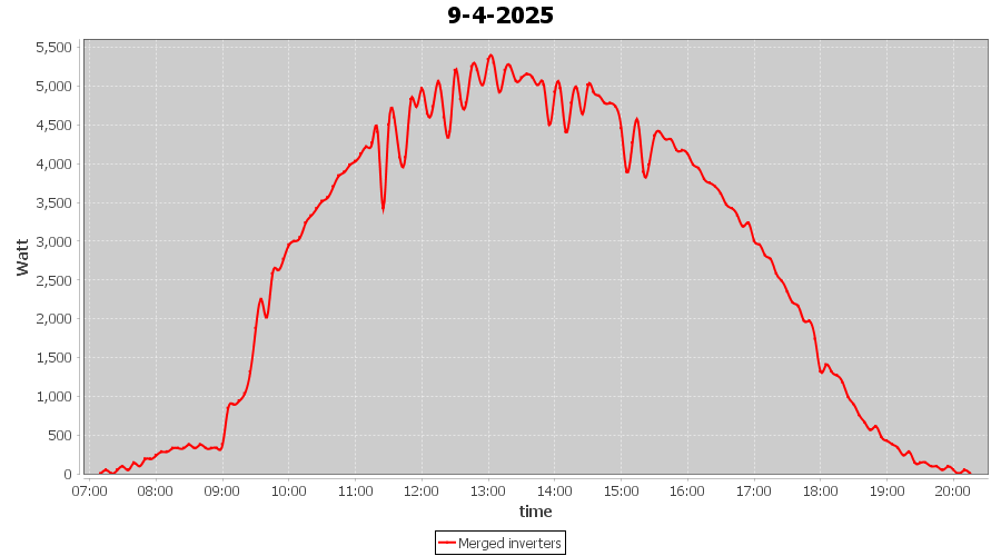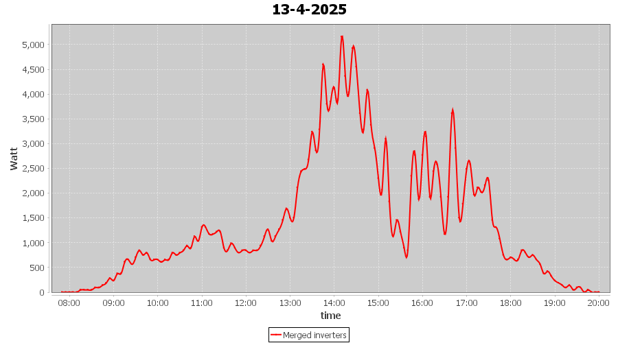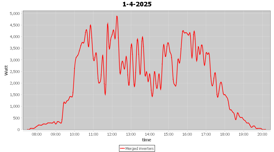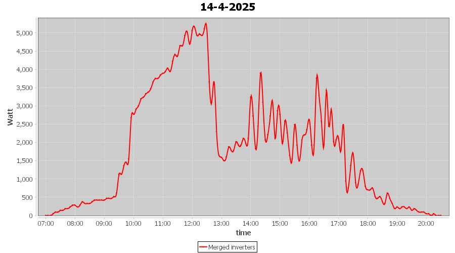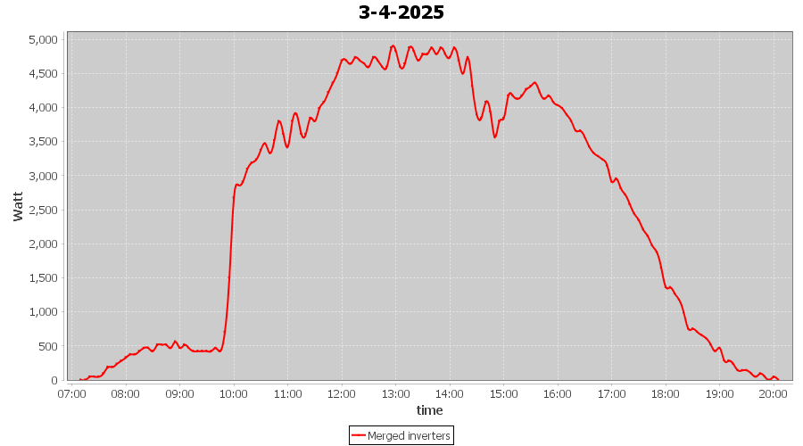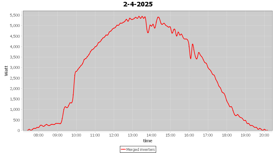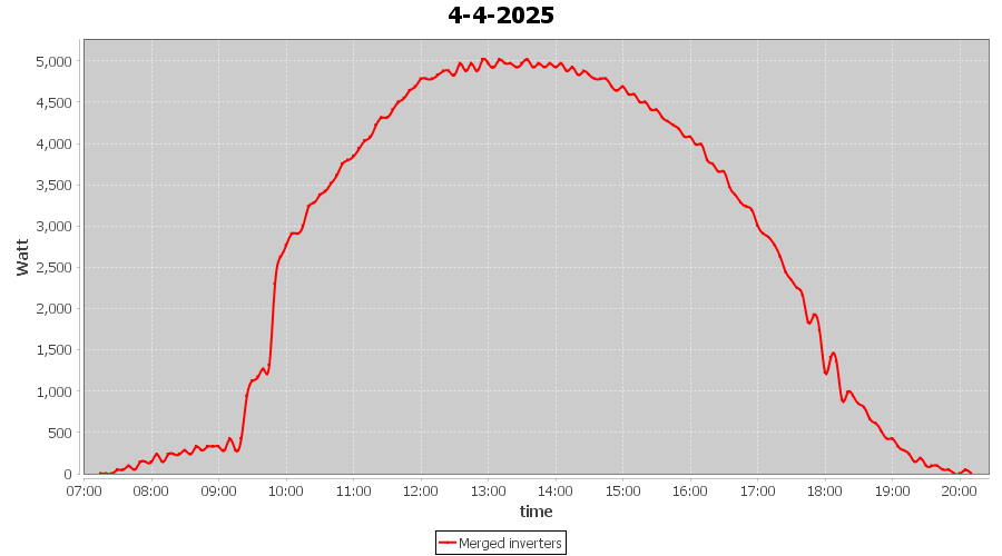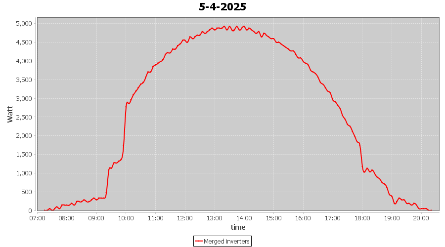 | 5-4-2025 | kWh | Sum | W/Wp | 34.402 | 6000 | 5.7 | 15.911 | € 12.90 | 4.6 |