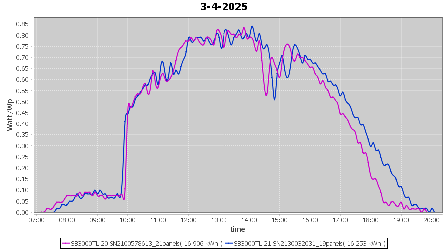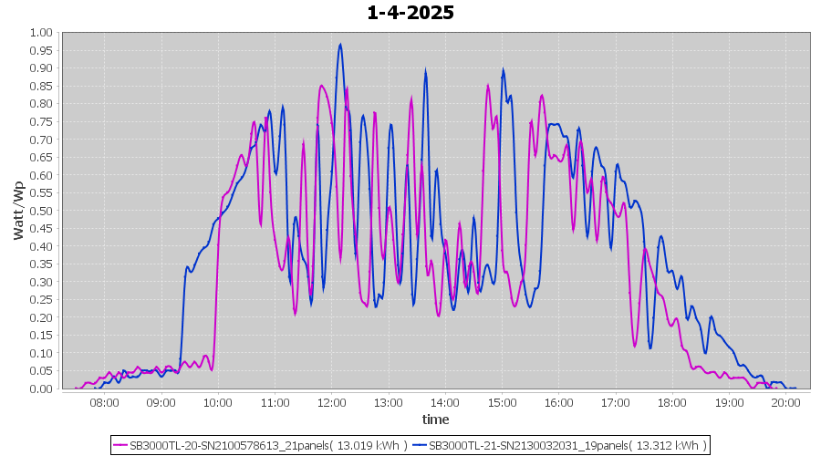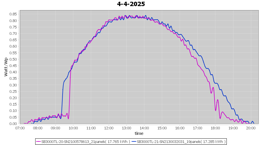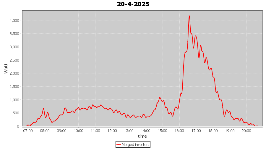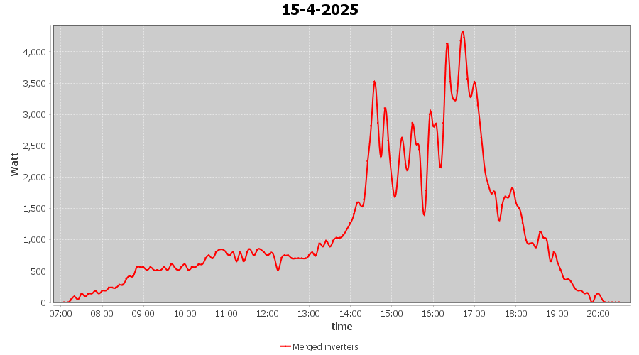 | 4-4-2025 | kWh | Sum | W/Wp | 35.050 | 6000 | 5.8 | 16.211 | € 13.14 | 4.6 |