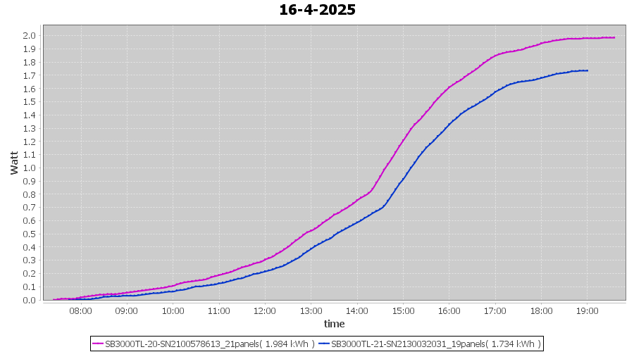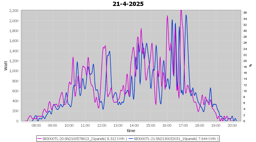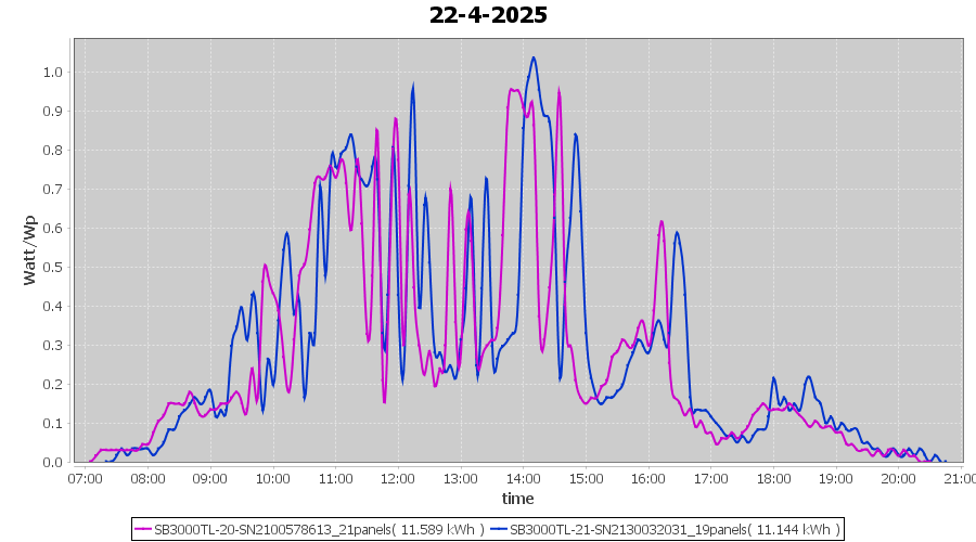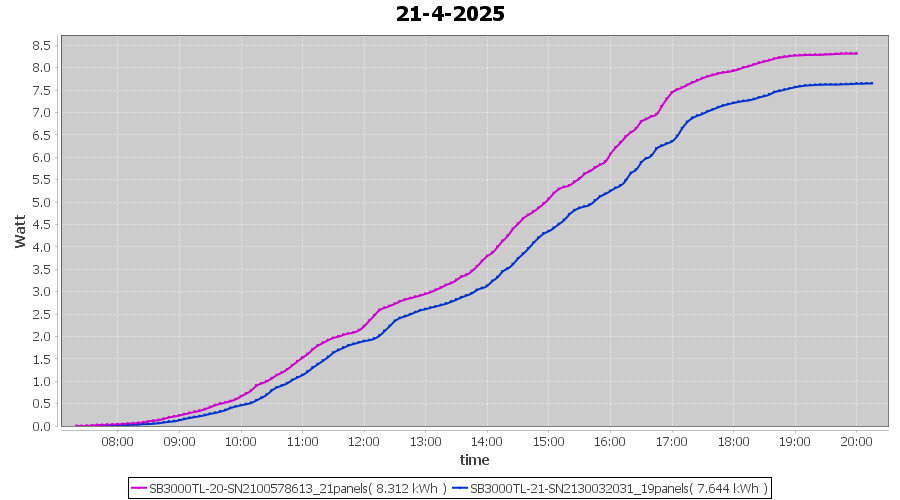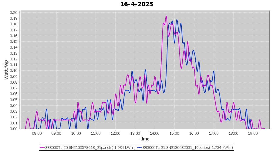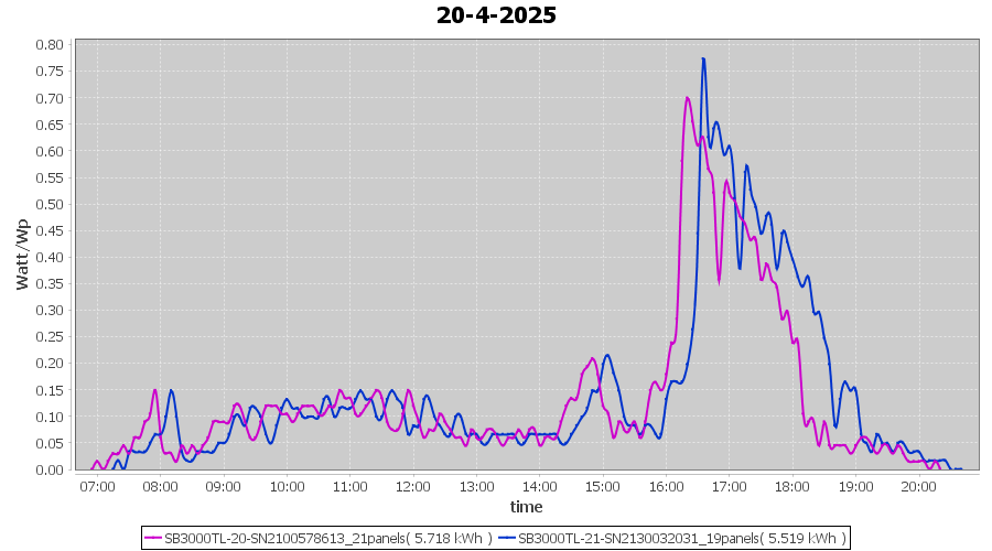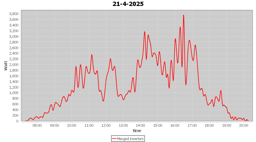 | 21-4-2025 | kWh | Sum | W/Wp | 15.956 | 6000 | 2.7 | 7.380 | € 5.98 | 2.1 |