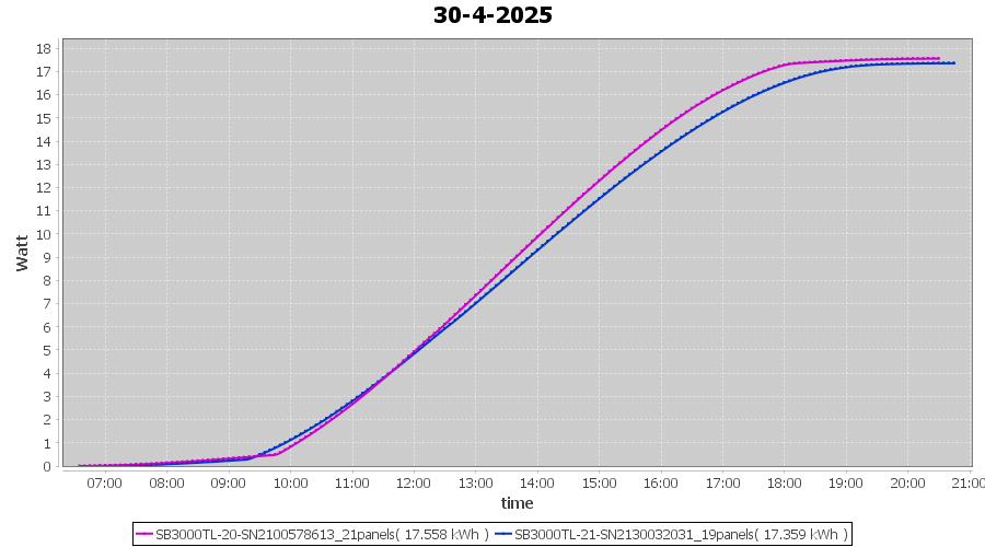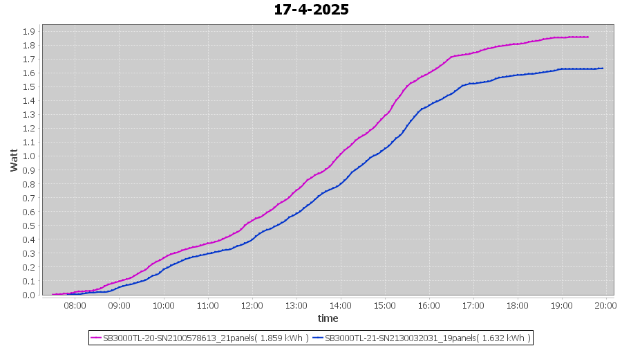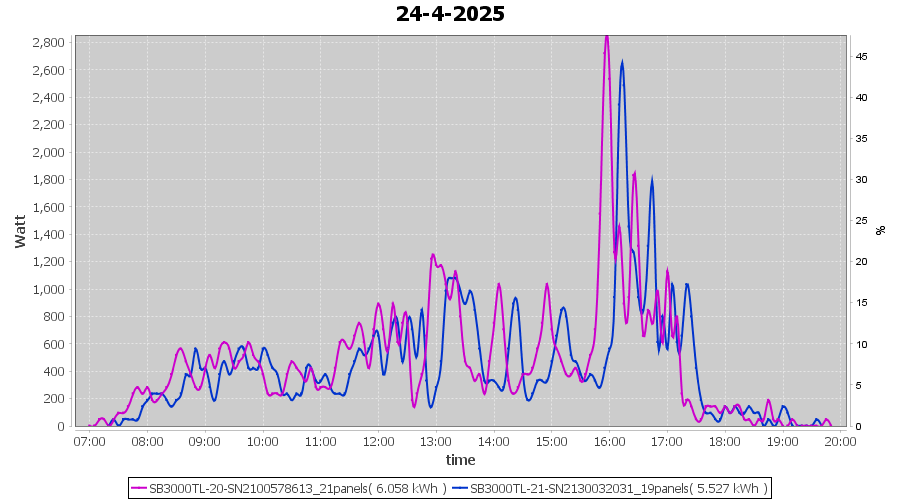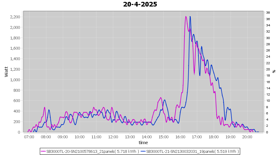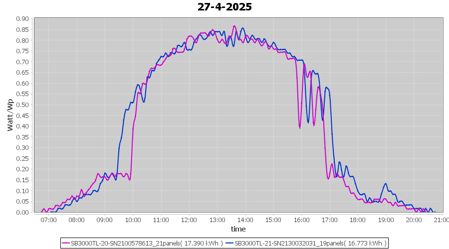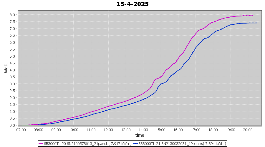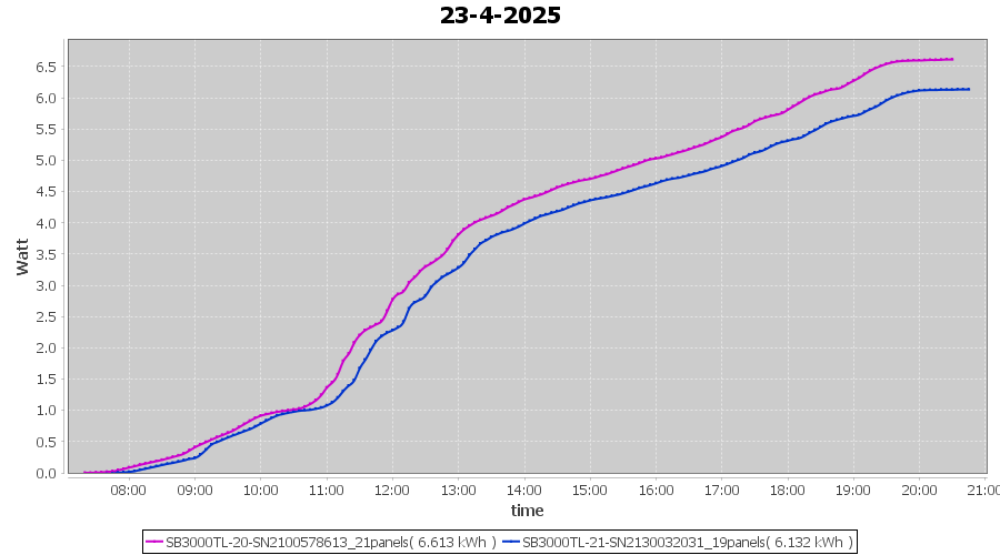 | 21-4-2025 | kWh | Sum | W/Wp | 15.956 | 6000 | 2.7 | 7.380 | € 5.98 | 2.1 |