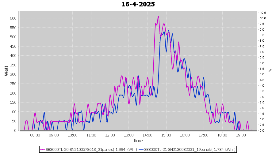 | 16-4-2025 | kWh | Sum | W/Wp | 3.718 | 6000 | 0.6 | 1.720 | € 1.39 | 0.5 |