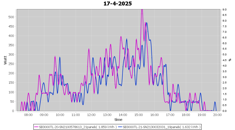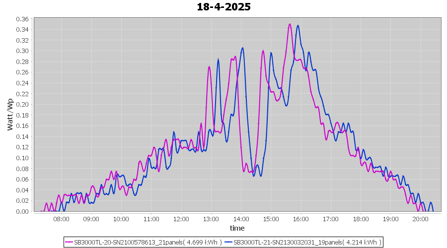 | 18-4-2025 | kWh | Sum | W/Wp | 8.913 | 6000 | 1.5 | 4.122 | € 3.34 | 1.2 |