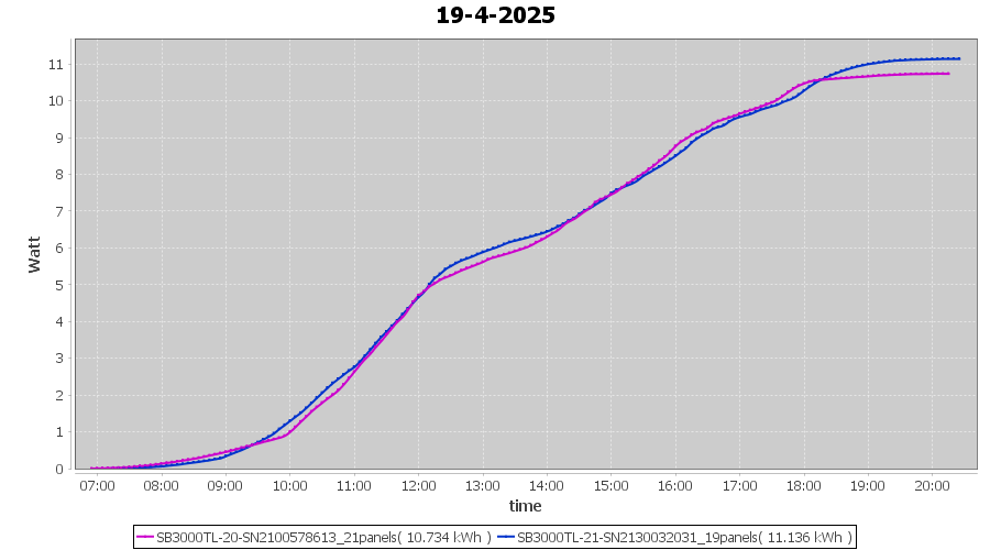 | 20-4-2025 | kWh | Sum | W/Wp | 11.237 | 6000 | 1.9 | 5.197 | € 4.21 | 1.5 |
