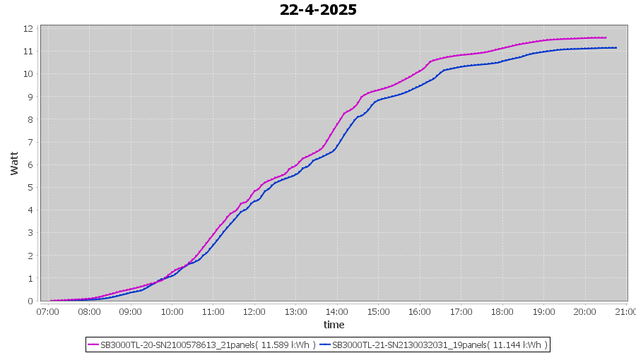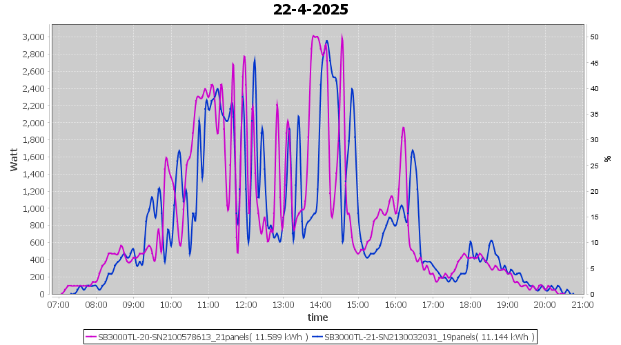 | 22-4-2025 | kWh | Sum | W/Wp | 22.733 | 6000 | 3.8 | 10.514 | € 8.52 | 3.0 |
