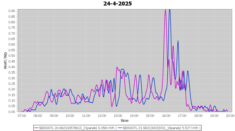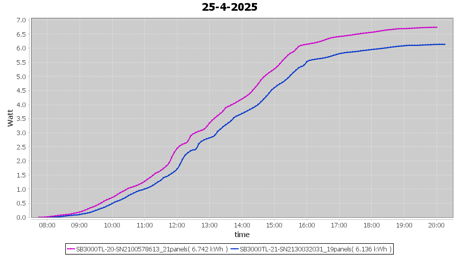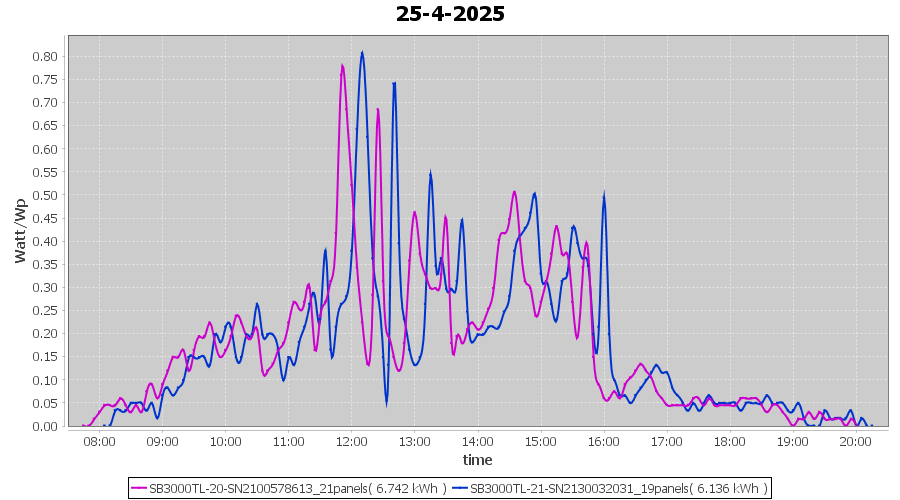 | 25-4-2025 | kWh | Sum | W/Wp | 12.878 | 6000 | 2.1 | 5.956 | € 4.83 | 1.7 |