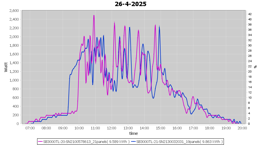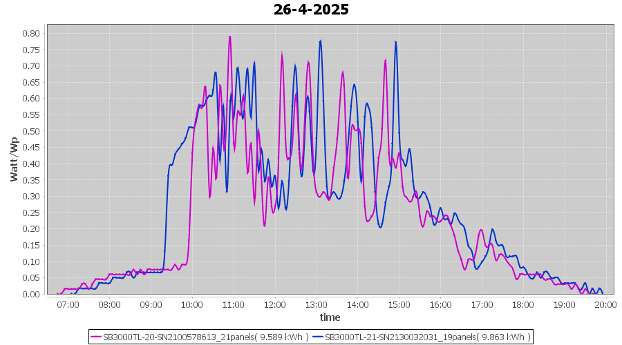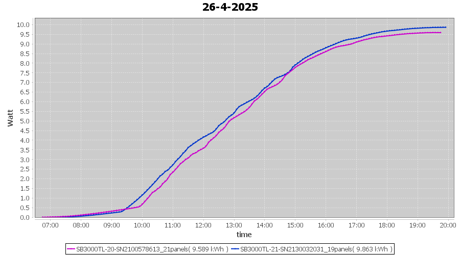| 26-4-2025 | kWh | Sum | W/Wp | 19.452 | 6000 | 3.2 | 8.997 | € 7.29 | 2.6 |