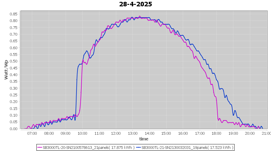 | 28-4-2025 | kWh | Sum | W/Wp | 35.398 | 6000 | 5.9 | 16.372 | € 13.27 | 4.7 |