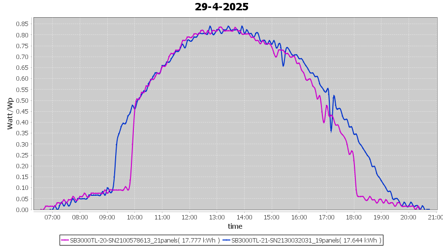 | 29-4-2025 | kWh | Sum | W/Wp | 35.421 | 6000 | 5.9 | 16.382 | € 13.28 | 4.7 |