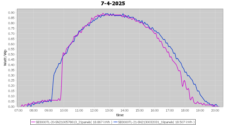 | 7-4-2025 | kWh | Sum | W/Wp | 37.374 | 6000 | 6.2 | 17.285 | € 14.01 | 5.0 |