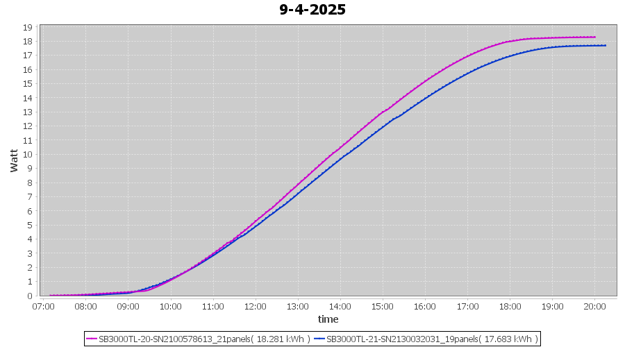 | SB3000TL-20-SN2100578613_21panels | 3150 | 362.250 | 115.0 | 381.880 | 121.2 | 105.4% | 381.880 | 121.2 | 105.4% |