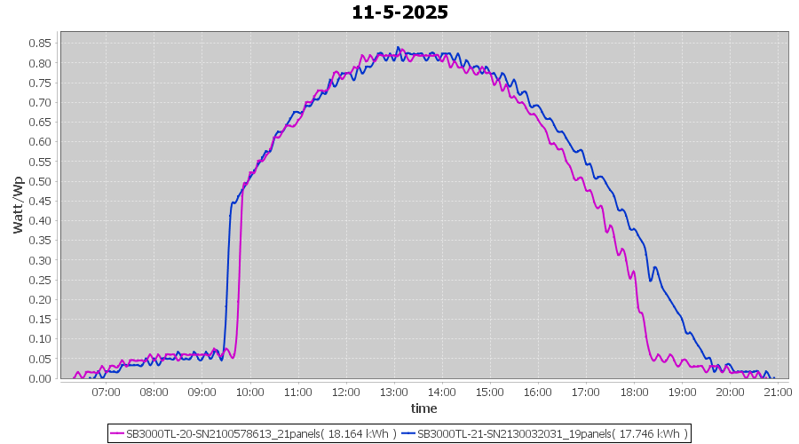 | 11-5-2025 | kWh | Sum | W/Wp | 35.910 | 6000 | 6.0 | 16.608 | € 13.46 | 7.8 |