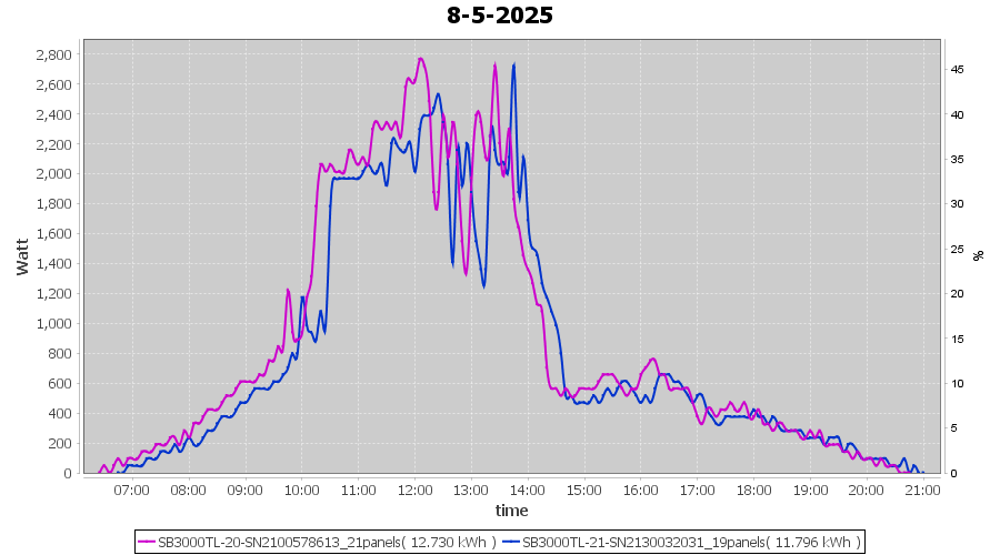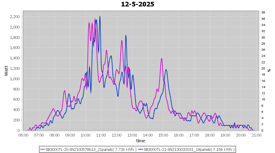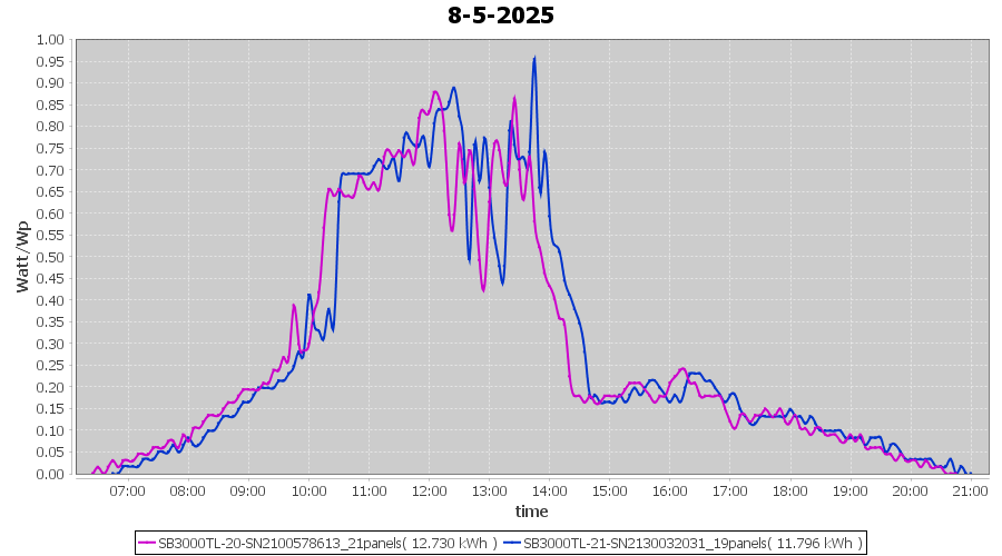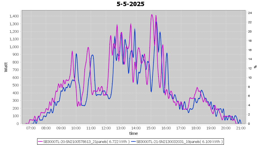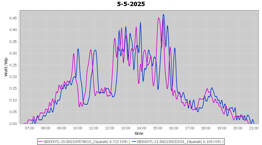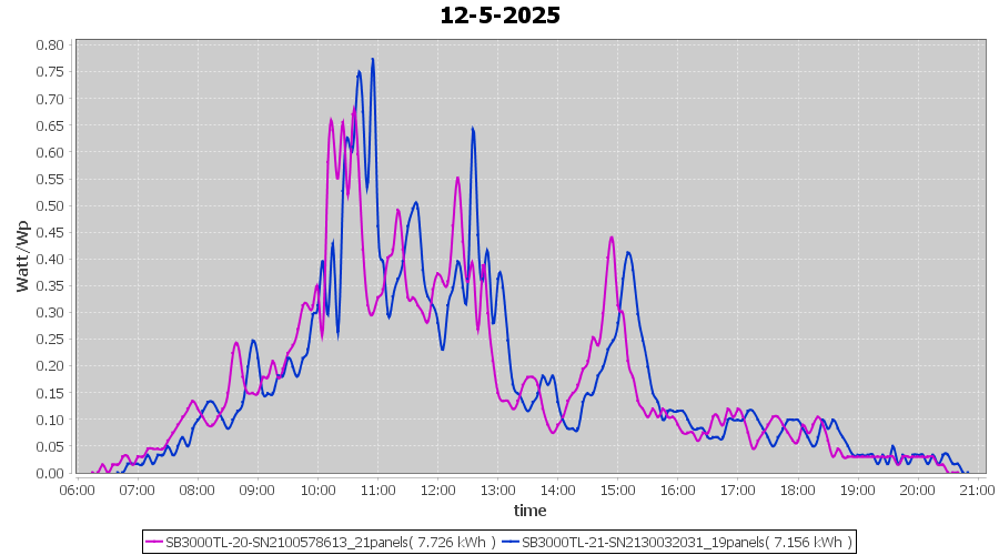 | 5-5-2025 | kWh | Sum | W/Wp | 12.831 | 6000 | 2.1 | 5.934 | € 4.81 | 2.8 |