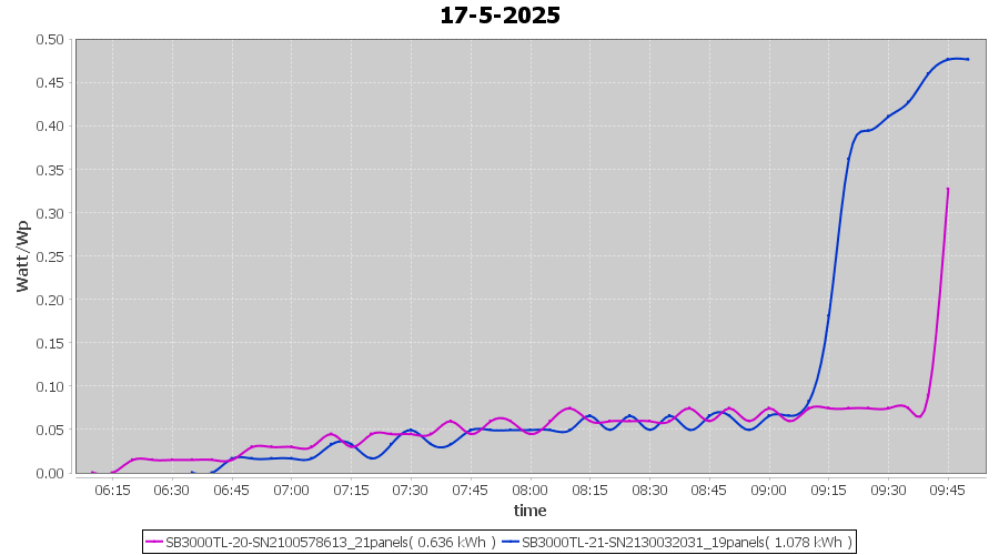 | 17-5-2025 | kWh | Sum | W/Wp | 1.714 | 6000 | 0.3 | 0.793 | € 0.64 | 0.4 |