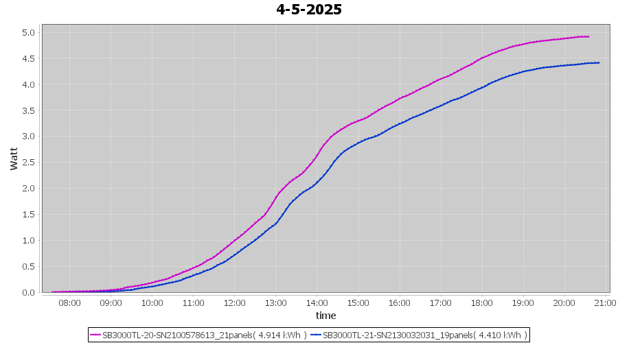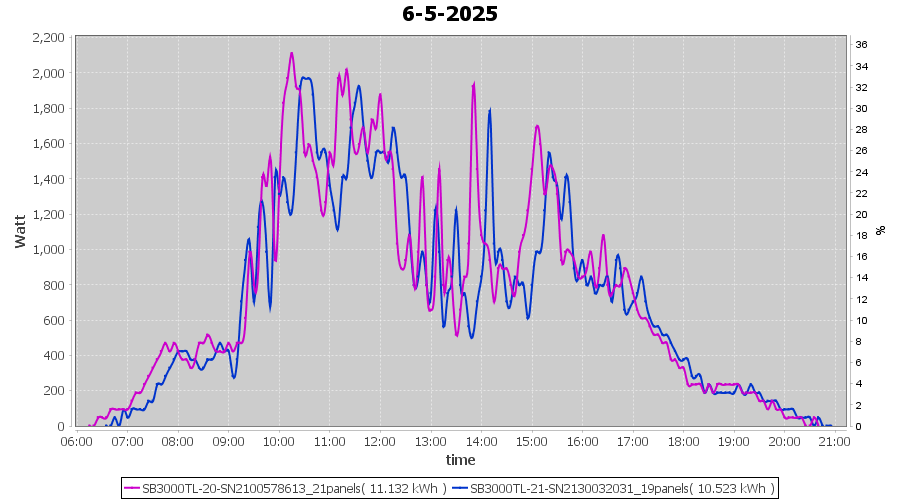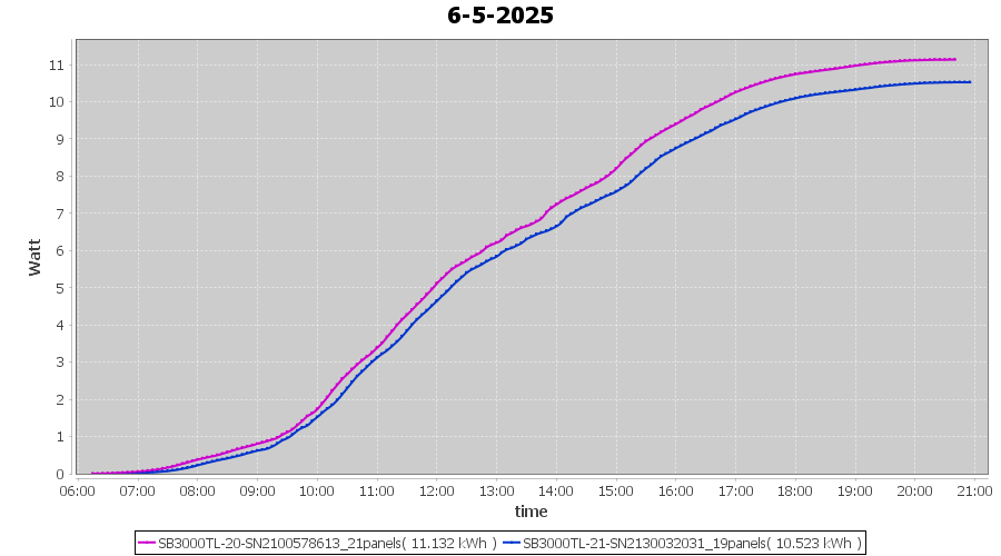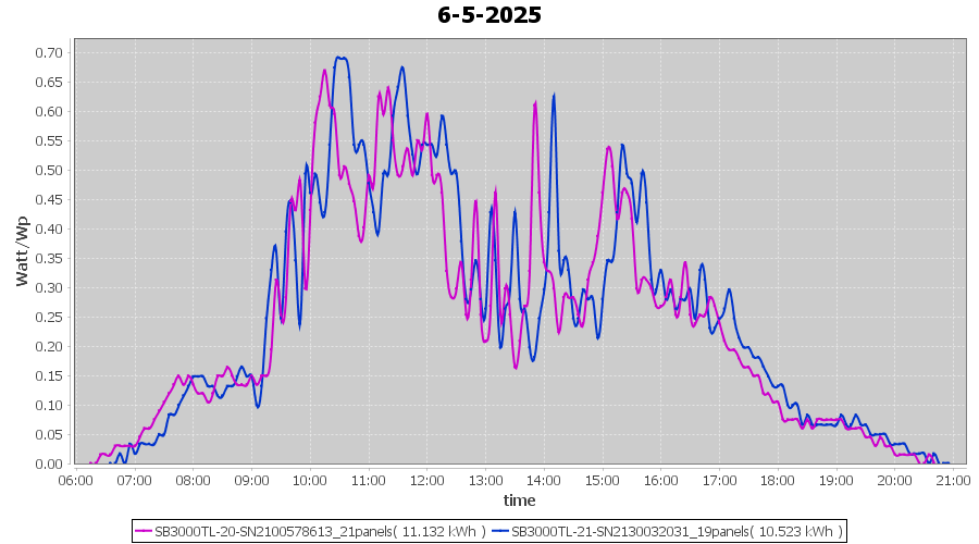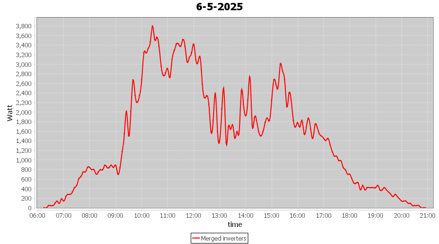 | 6-5-2025 | kWh | Sum | W/Wp | 21.655 | 6000 | 3.6 | 10.015 | € 8.12 | 4.7 |