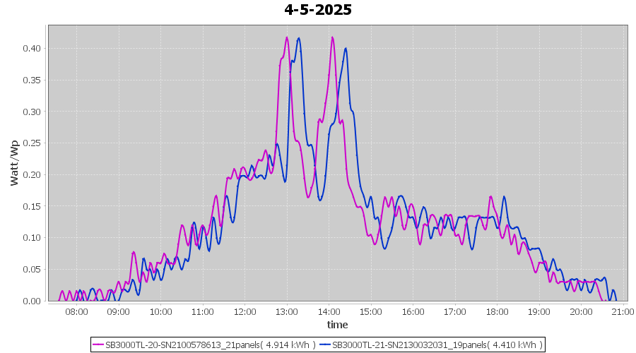 | 8-5-2025 | kWh | Sum | W/Wp | 24.526 | 6000 | 4.1 | 11.343 | € 9.20 | 5.4 |