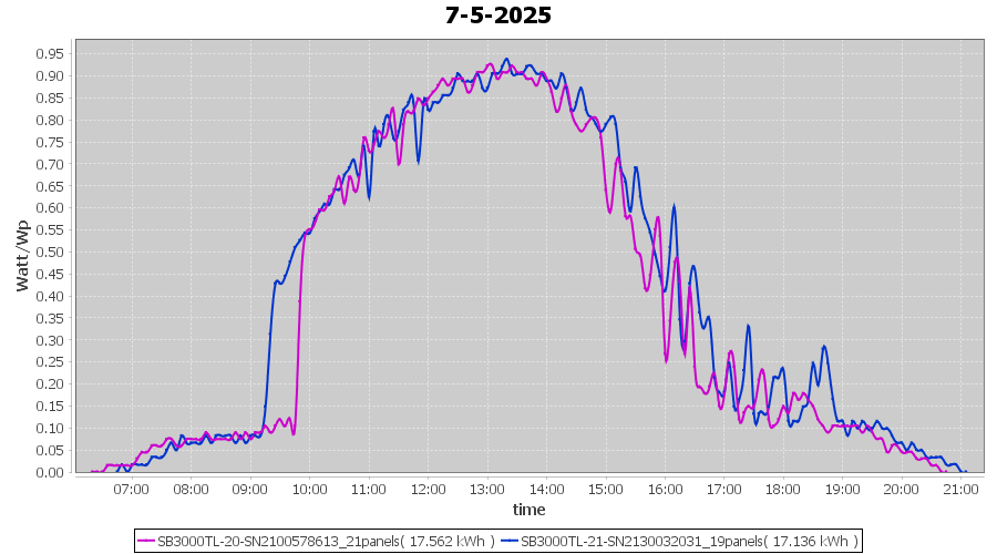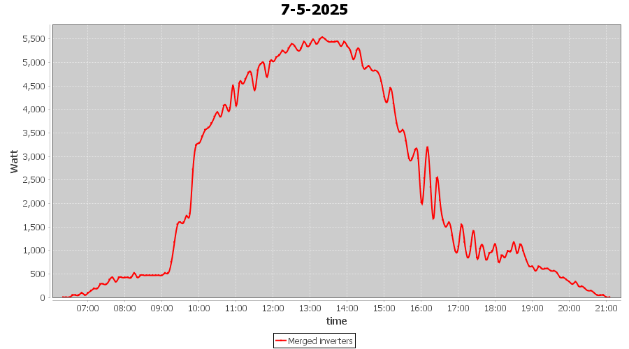 | 7-5-2025 | kWh | Sum | W/Wp | 34.698 | 6000 | 5.8 | 16.048 | € 13.01 | 7.6 |