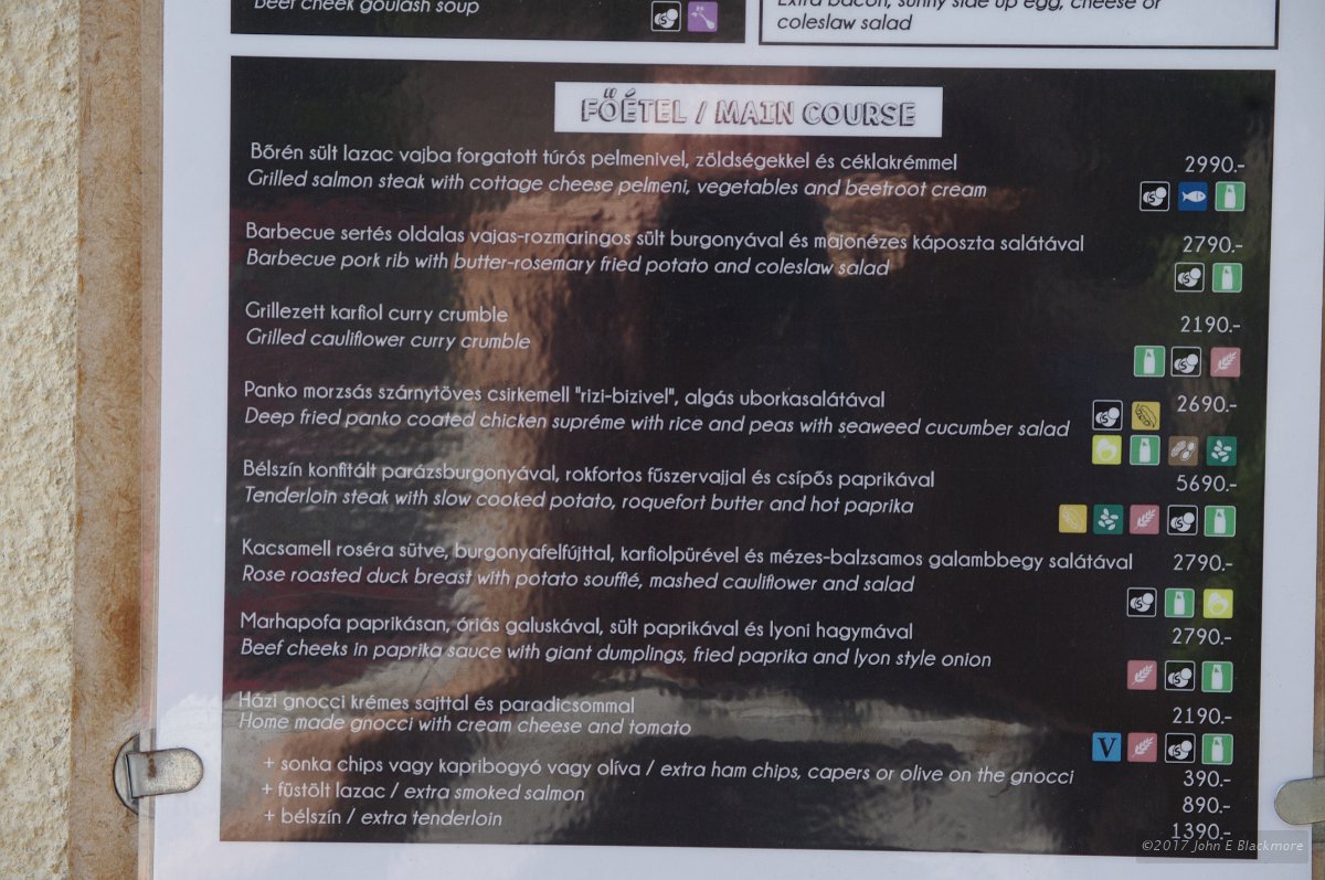 227 Budapest, Carne di Hall restaurant, Fresh fish from the market (Tuna) flavoured with red wine, Hungary, onions, spinach, sweet potato |