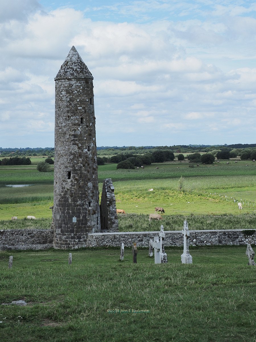 Clonmacnoise, Ireland, mediaeval monastery, round tower |