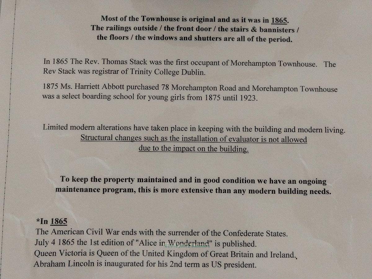 Dublin, Ireland, Morehampton Townhouse notice |