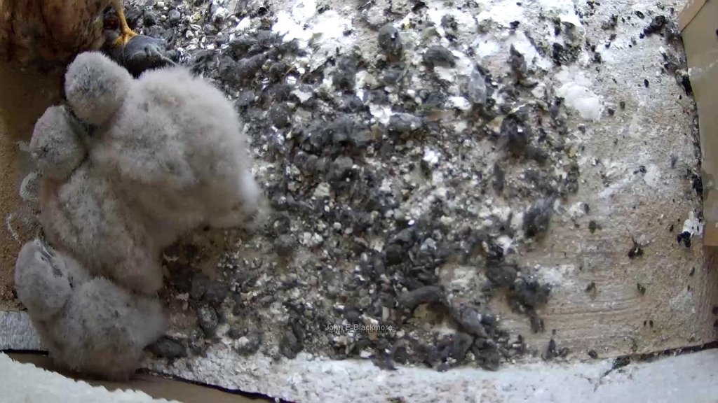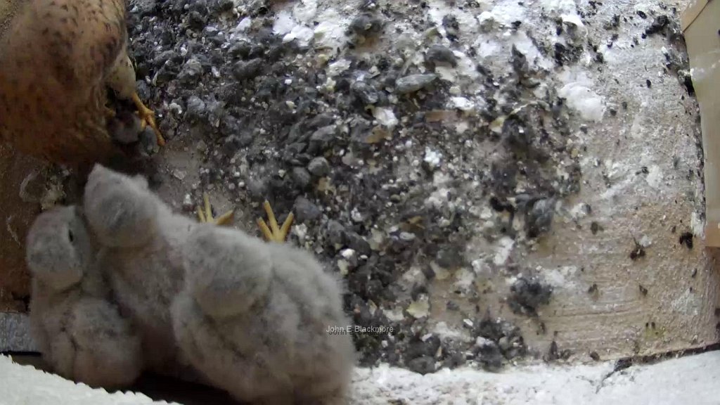 08:38 blue tail feathers of a male chick