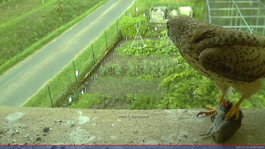 14:28 And a surprise. The cock appears for the first time since 2 July. But it is now fairly obvious why some of the food has been retrieved so quickly!