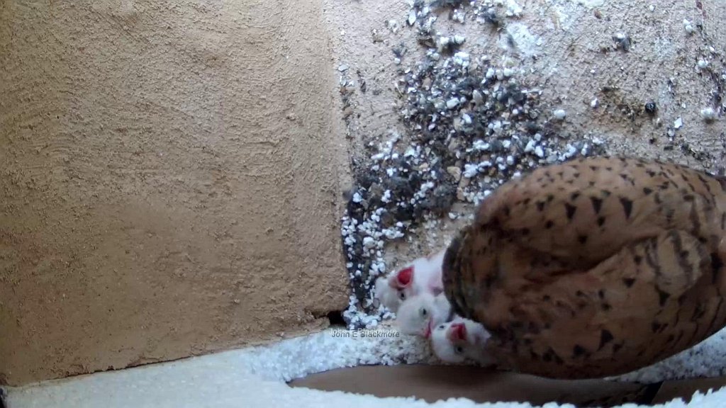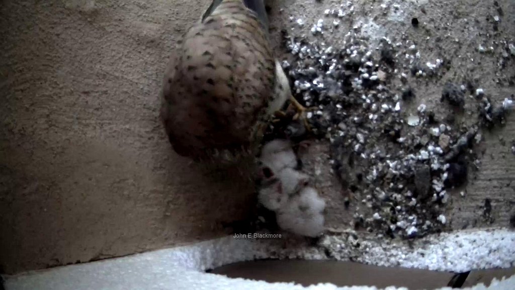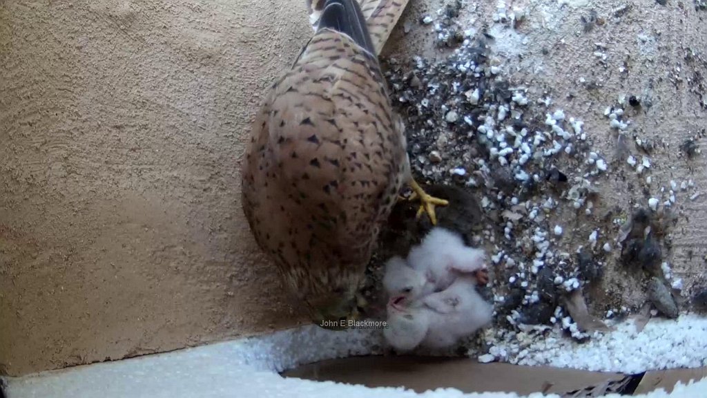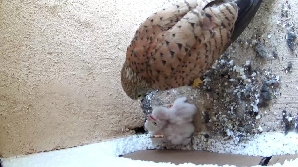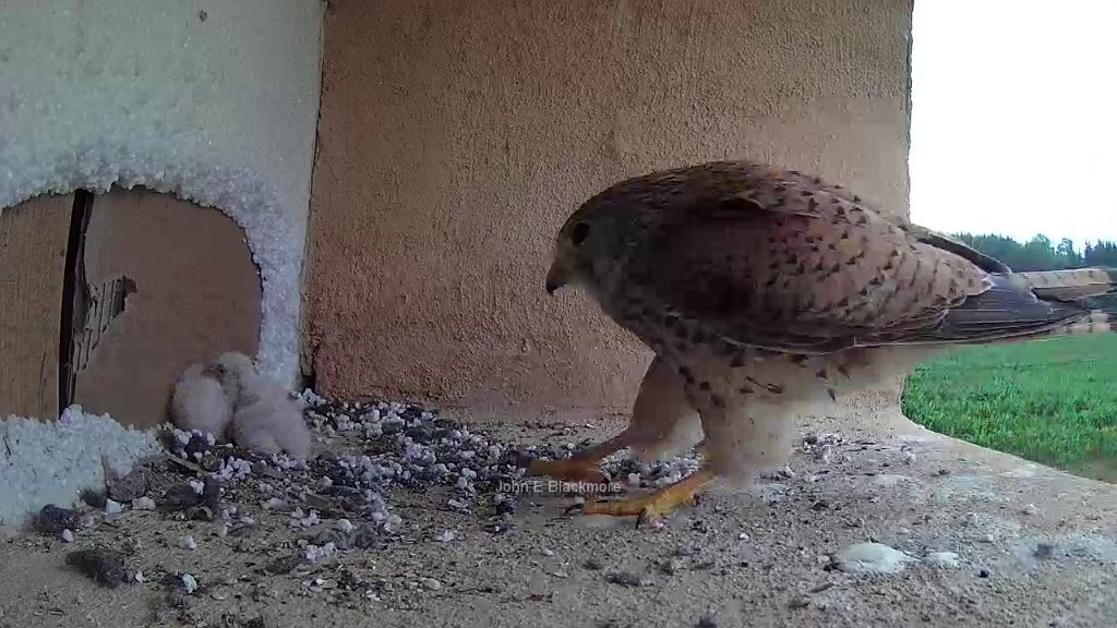 video - Third feed of the day. Unfortunately the vole was damp from the rain and picked up some of the polystyrene chippings. Will they choke the chicks?