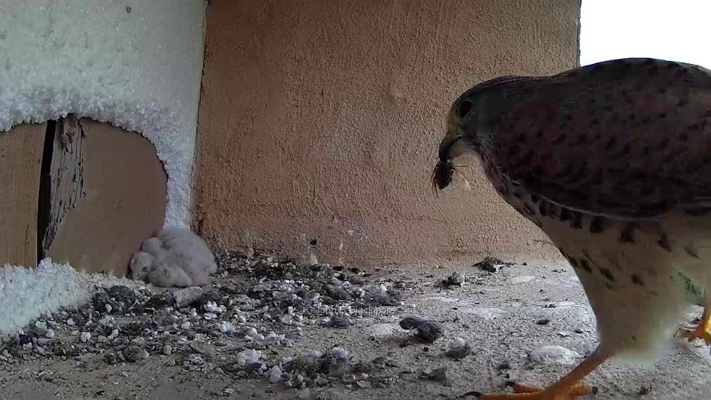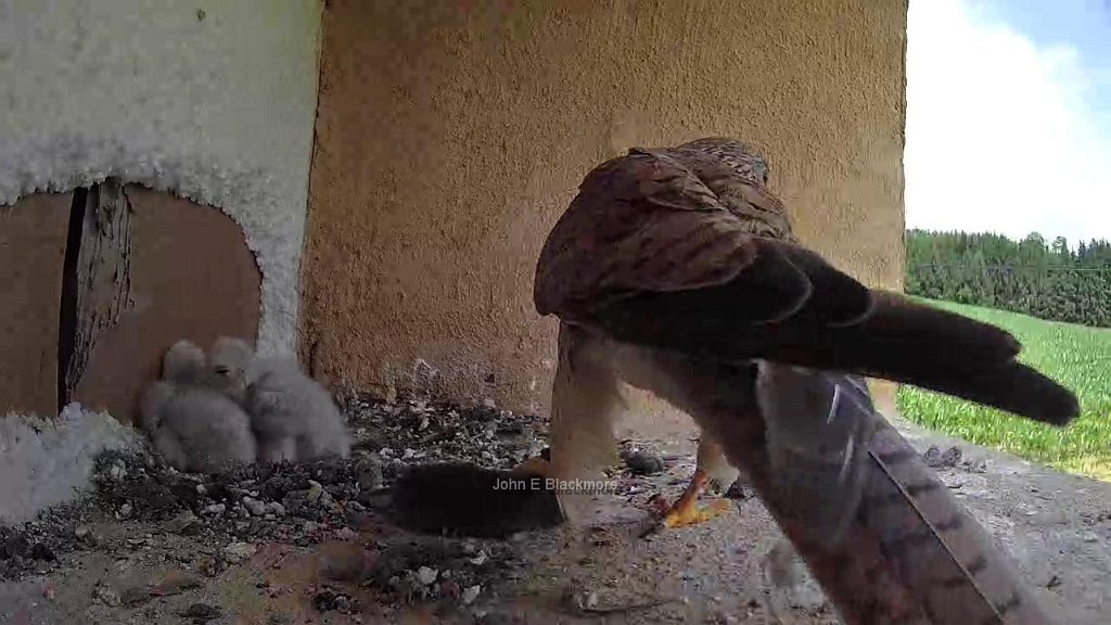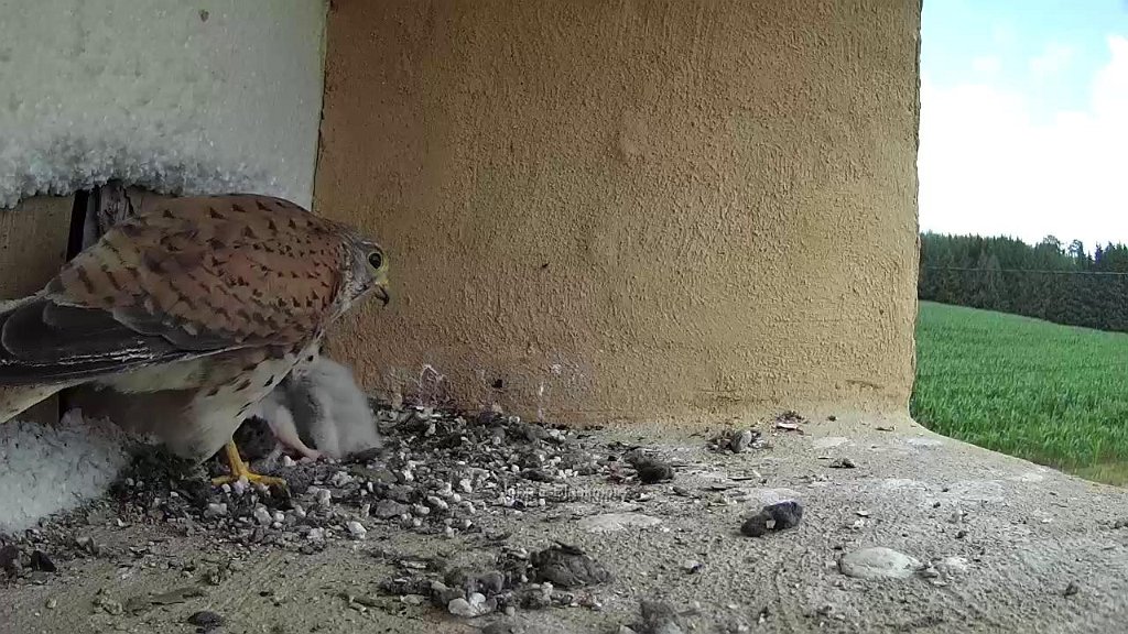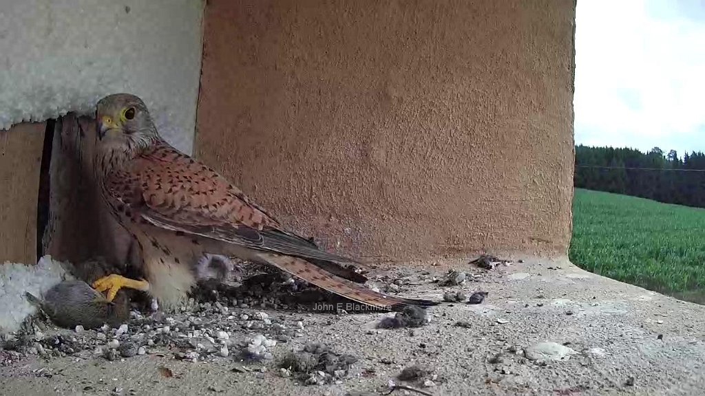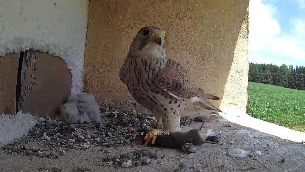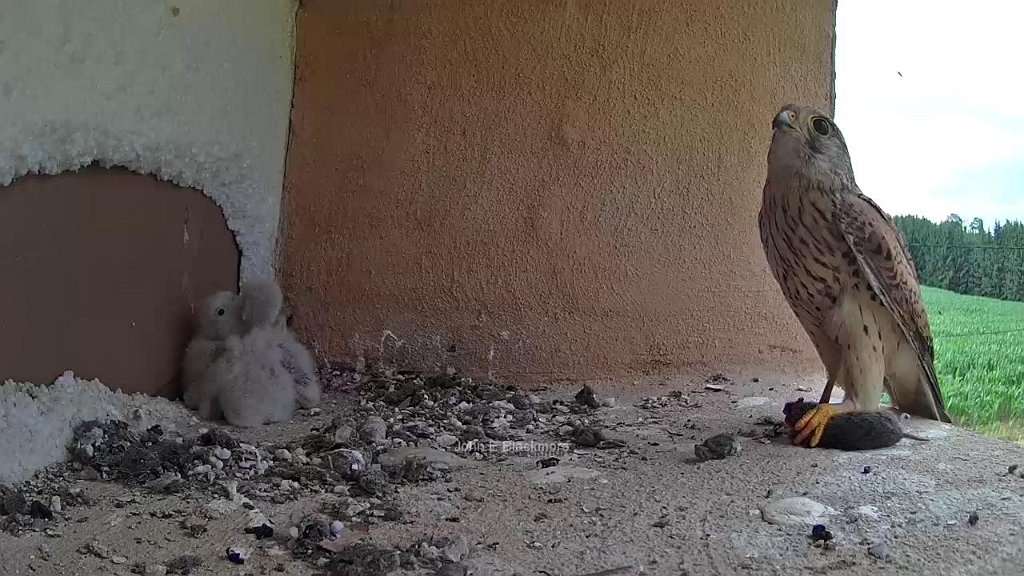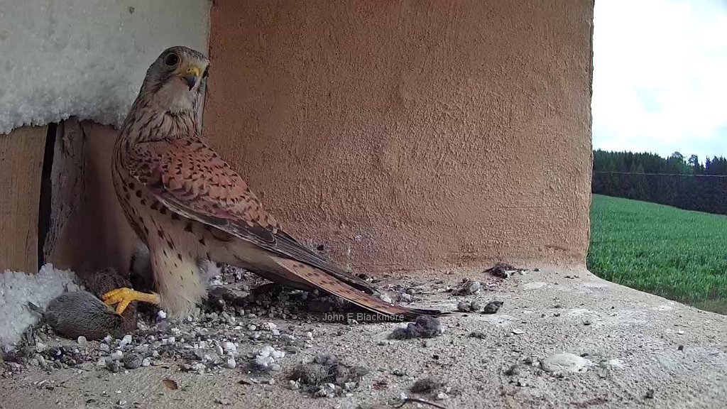 13:45 another mouse but it wasn't fed to the chicks. I think she flew off and had some then later came back with part of it