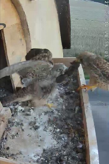 video - 06h56 the female brings a mouse for the last juvenile