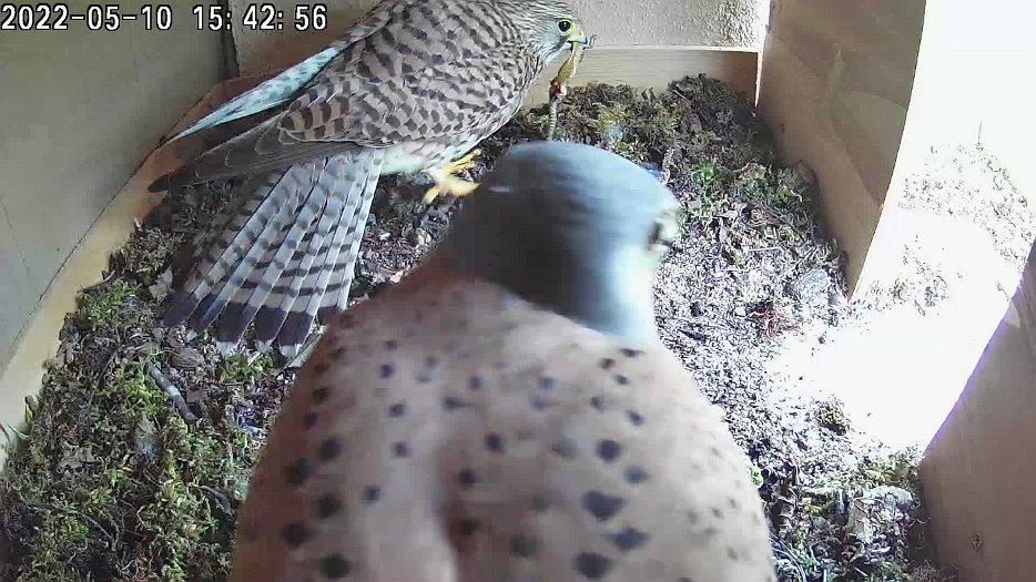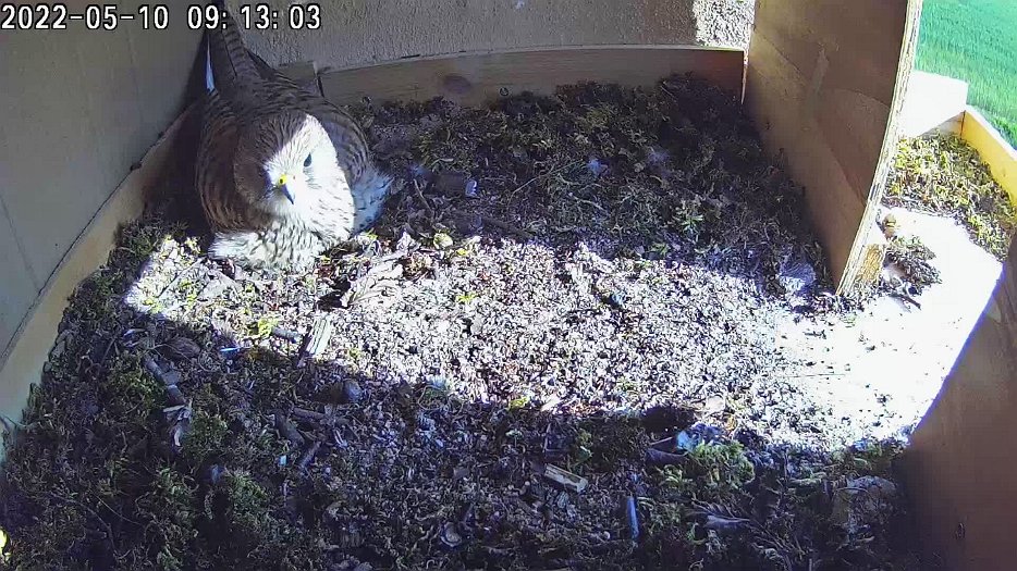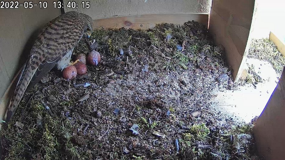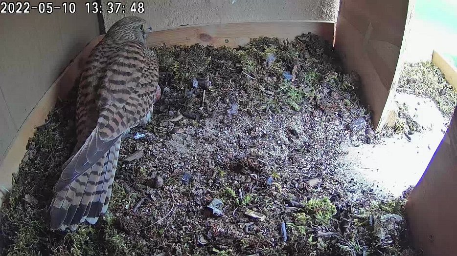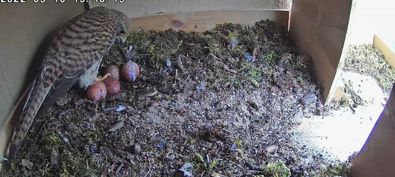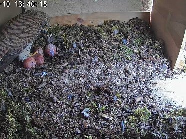 video 13h36 the kestrel lays a fourth egg at 13h38h08