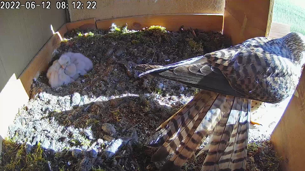video - 07h32 the female finds some part-eaten food to feed herself and the chicks