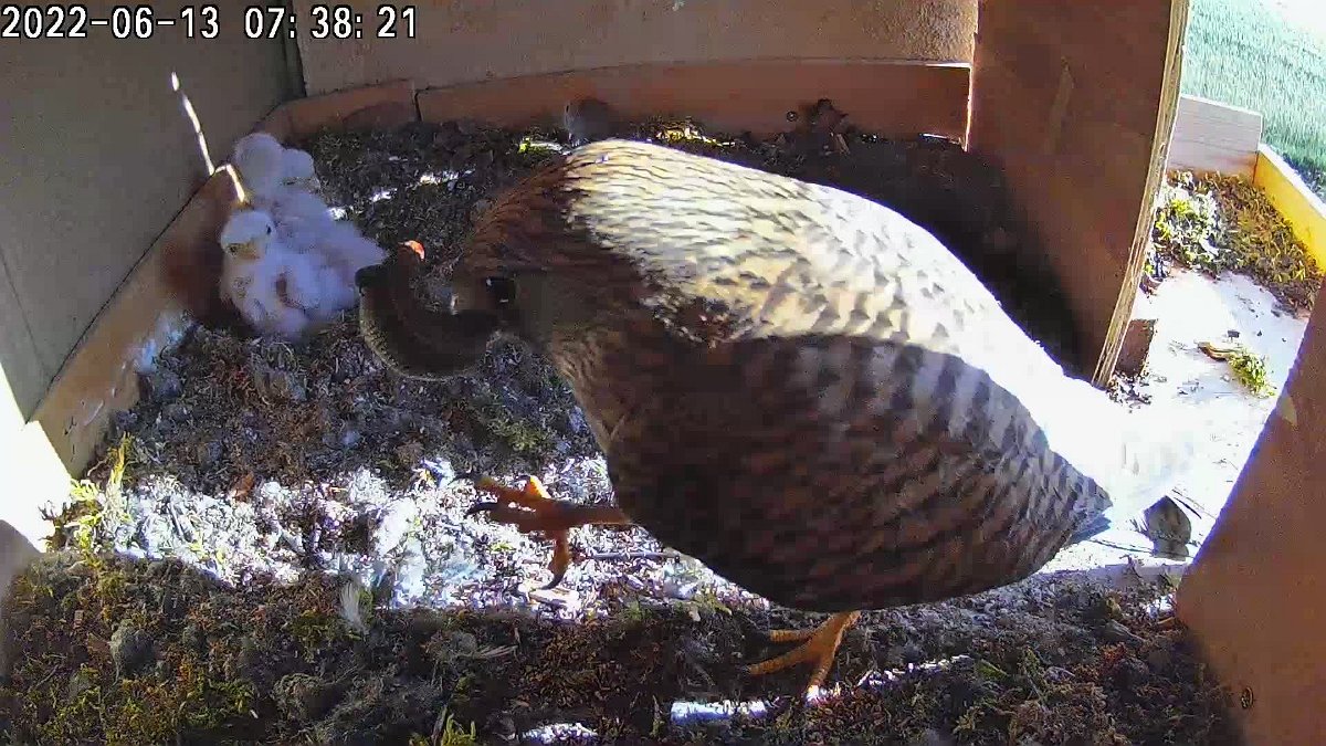 video - 20h58 collects stored food, goes out then comes in to feed chicks