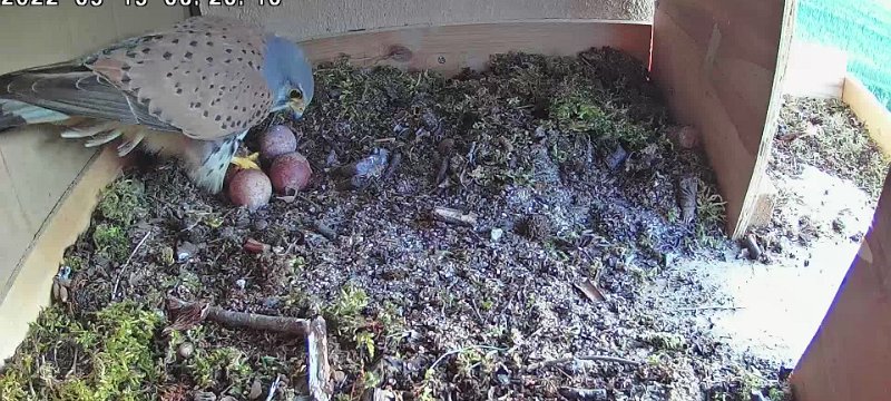 video - 06h18 - male flying in then both fly off1 video - 0619 male flies in2 video - 06h19 male sits on eggs for a short time3 video - 07h48 male flying in then both flying off4 17 may 202214 may 2022