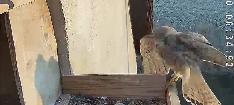 video - 06h34 a juvenile catches a slug (?) by the roadside and flies to the balcony; another juvenile arrives1 23 july 202219 july 2022