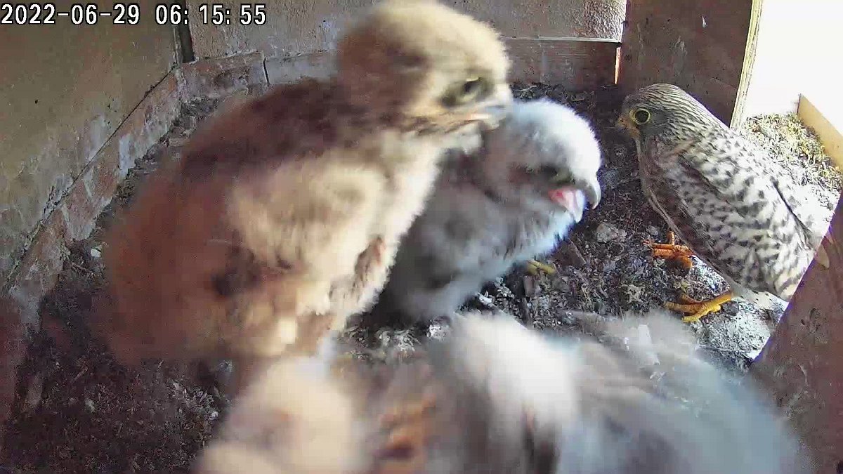 video - 19h31 a chick attempts to headbutt the camera and leaves a deposit on the lens which blurs the image