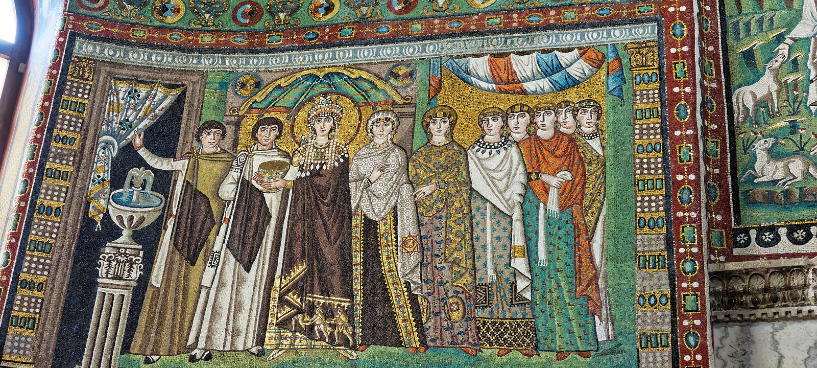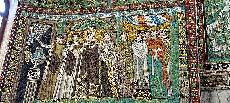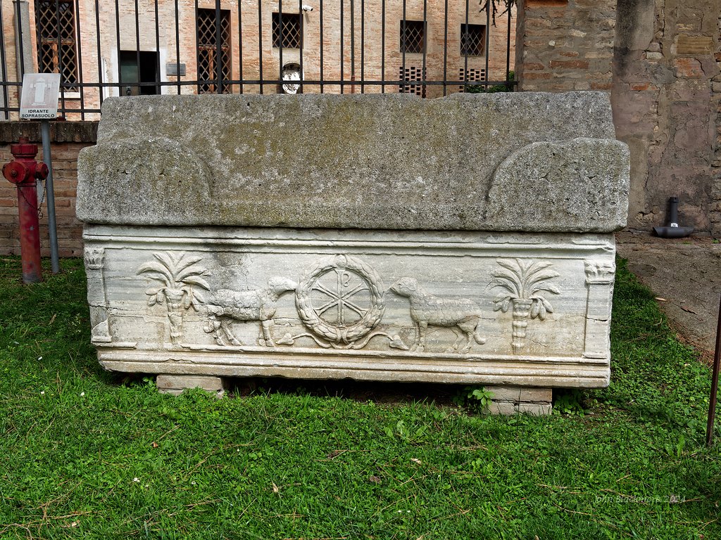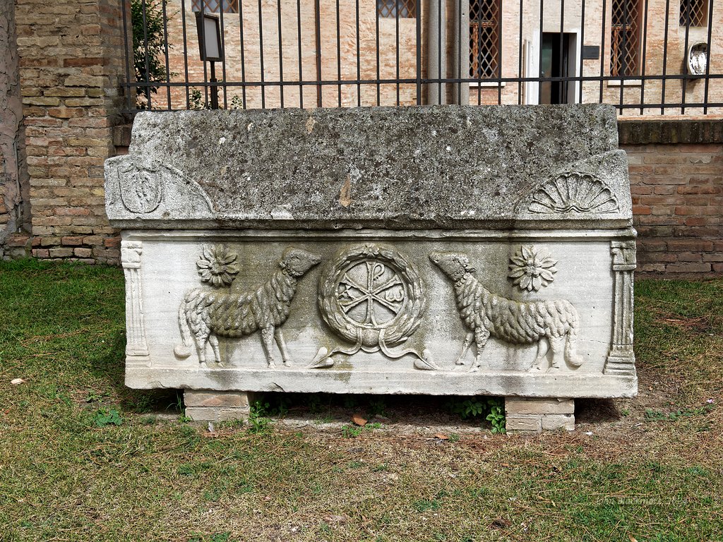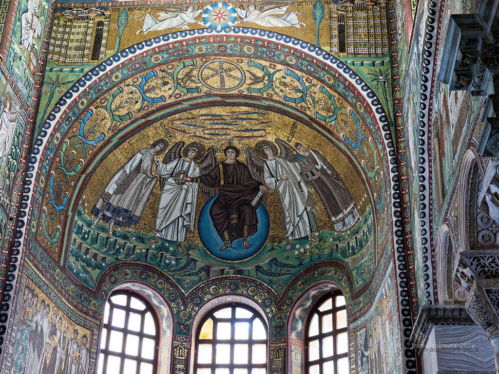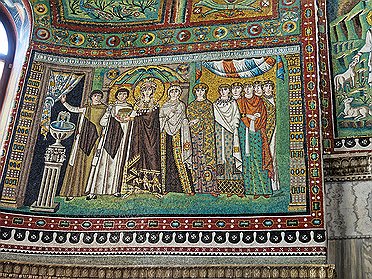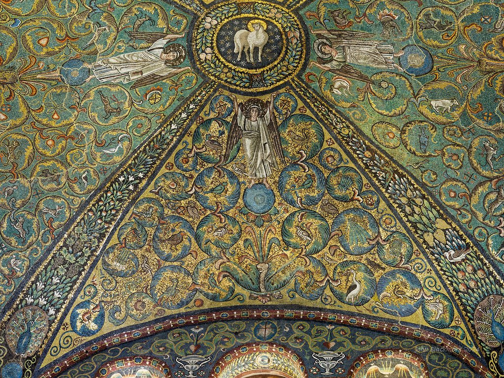 Christ, two archangels offering crown of martyrdom to St Vitalis with bishop Ecclesio