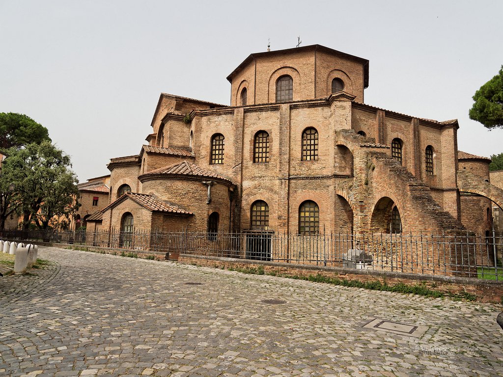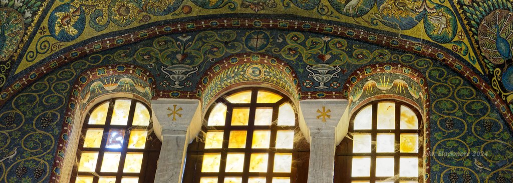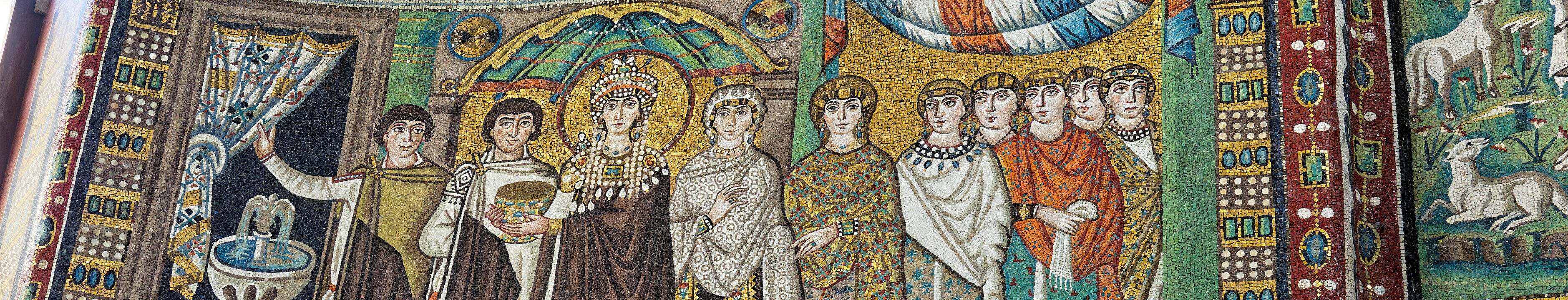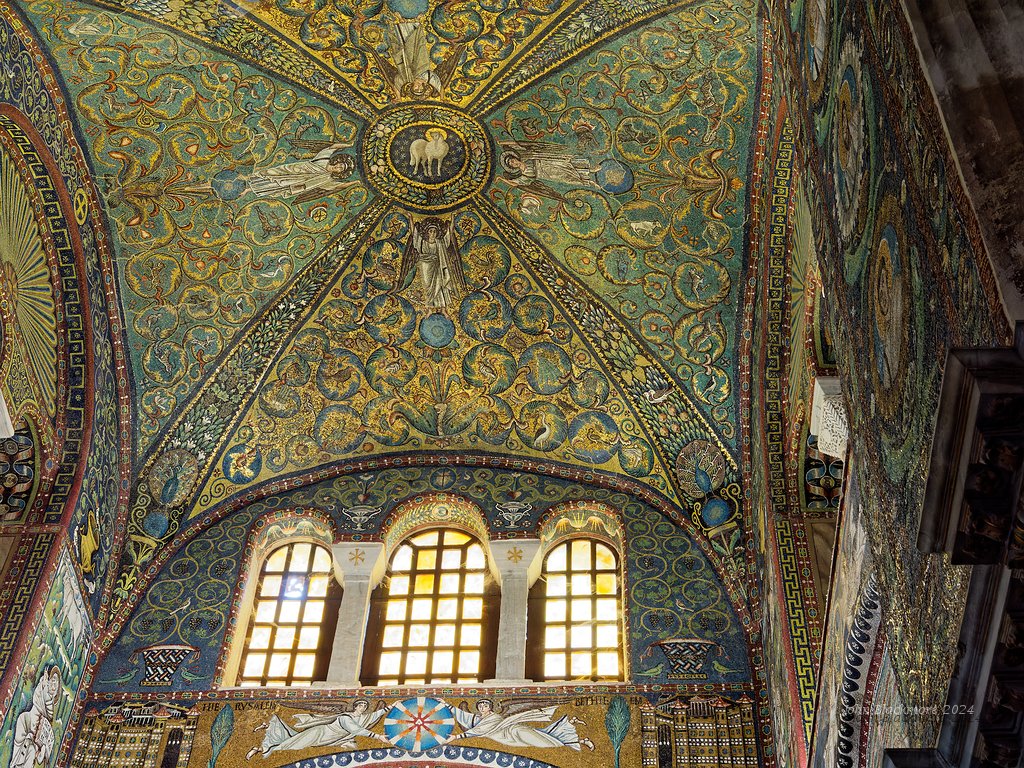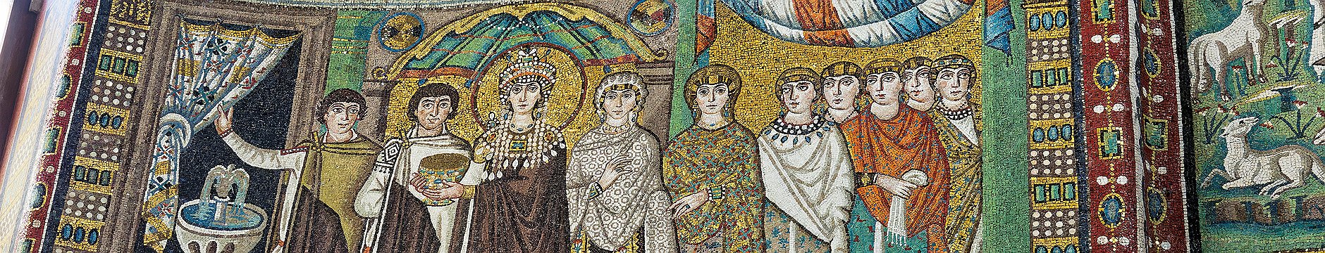 Christ, two archangels offering crown of martyrdom to St Vitalis with bishop Ecclesio