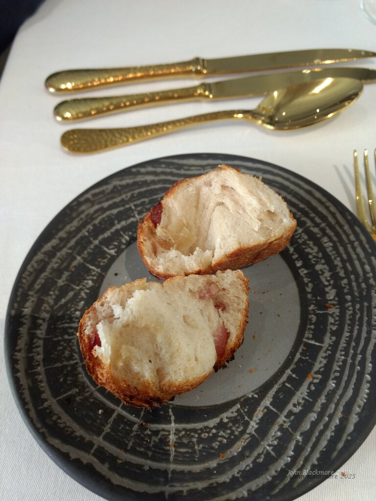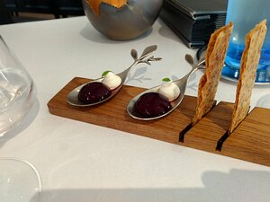Amuse bouche: Beetroot balls, goats' cheese and sardine wafers