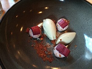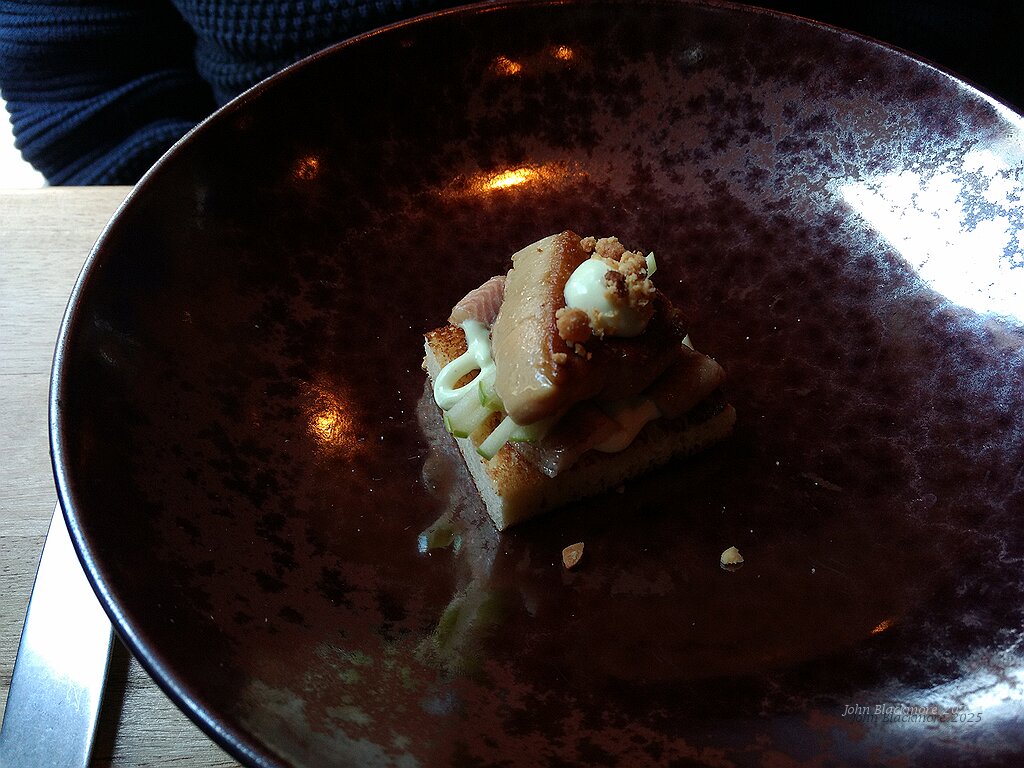 Grahams-Kitchen-Restaurant_Amsterdam_20190510_IMG195438074 second course: Duck Liver, smoked eel, apple, vadouvan, brioche