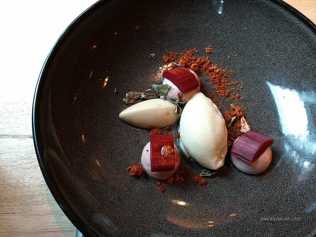 Grahams-Kitchen-Restaurant_Amsterdam_20190510_IMG205814342 fifth course: rhubarb, white chocolate, mint, rhubarb sorbet