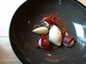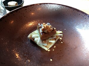 second course: Duck Liver, smoked eel, apple, vadouvan, brioche